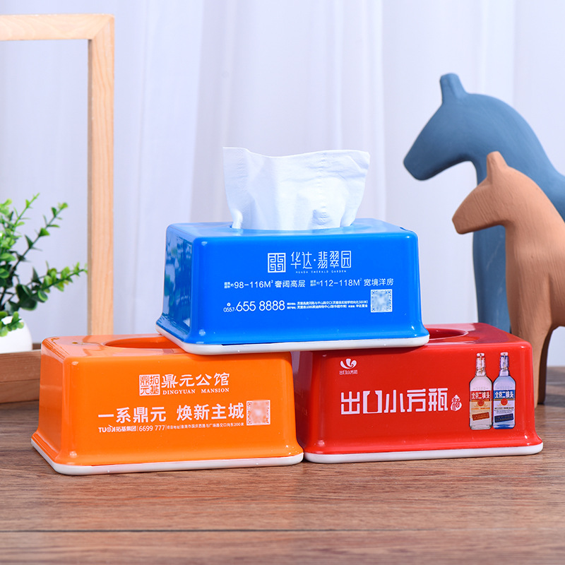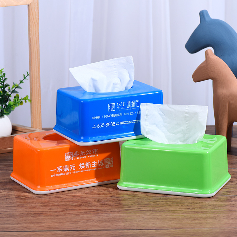 Автомобильная рекламная коробка для салфеток с напечатанным логотипом, прямоугольная пластиковая коробка для салфеток для гостиной и обеденного стола, оптом