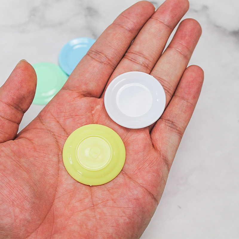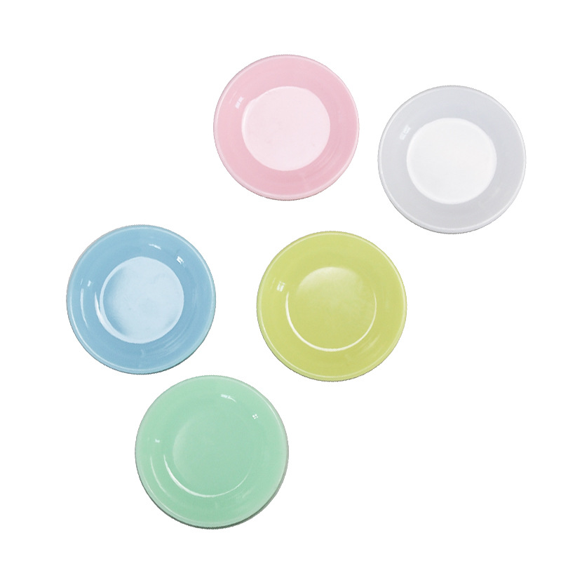 Маленькая белая тарелка диаметром 3,5 см.; Маленький лоток для порошка диаметром 3,5 см.; Маленькая желтая тарелка диаметром 3,5 см.; Маленькая зеленая тарелка диаметром 3,5 см.; Маленькая синяя тарелка диаметром 3,5 см.; Маленькая черная тарелка диаметром 3,5 см.