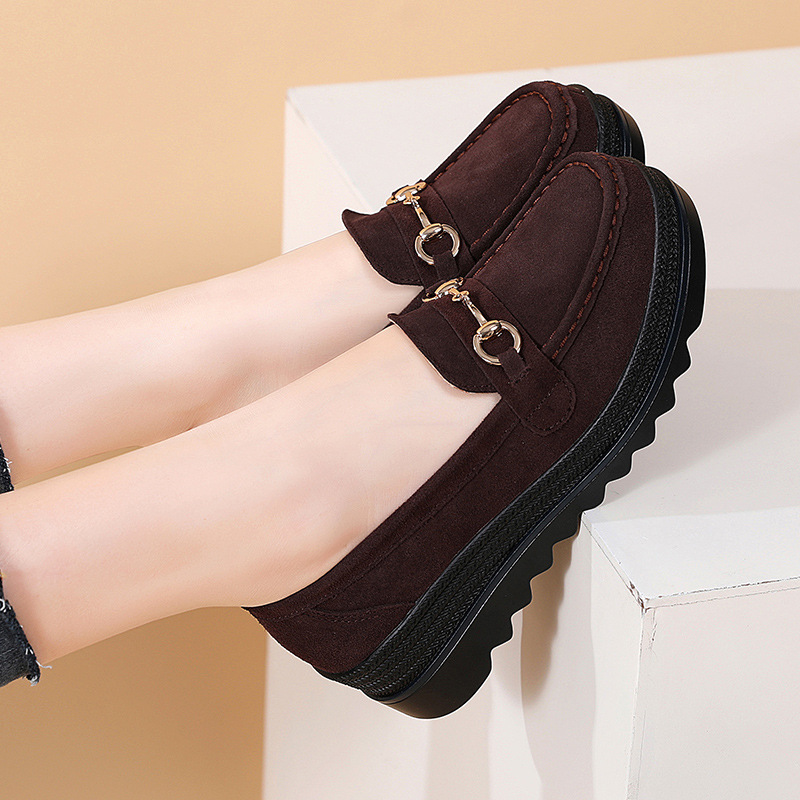 Женская обувь большого размера из натуральной кожи, весенние универсальные туфли на платформе на толстой подошве, лоферы без шнуровки в корейском стиле, обувь для спорта и отдыха для мам