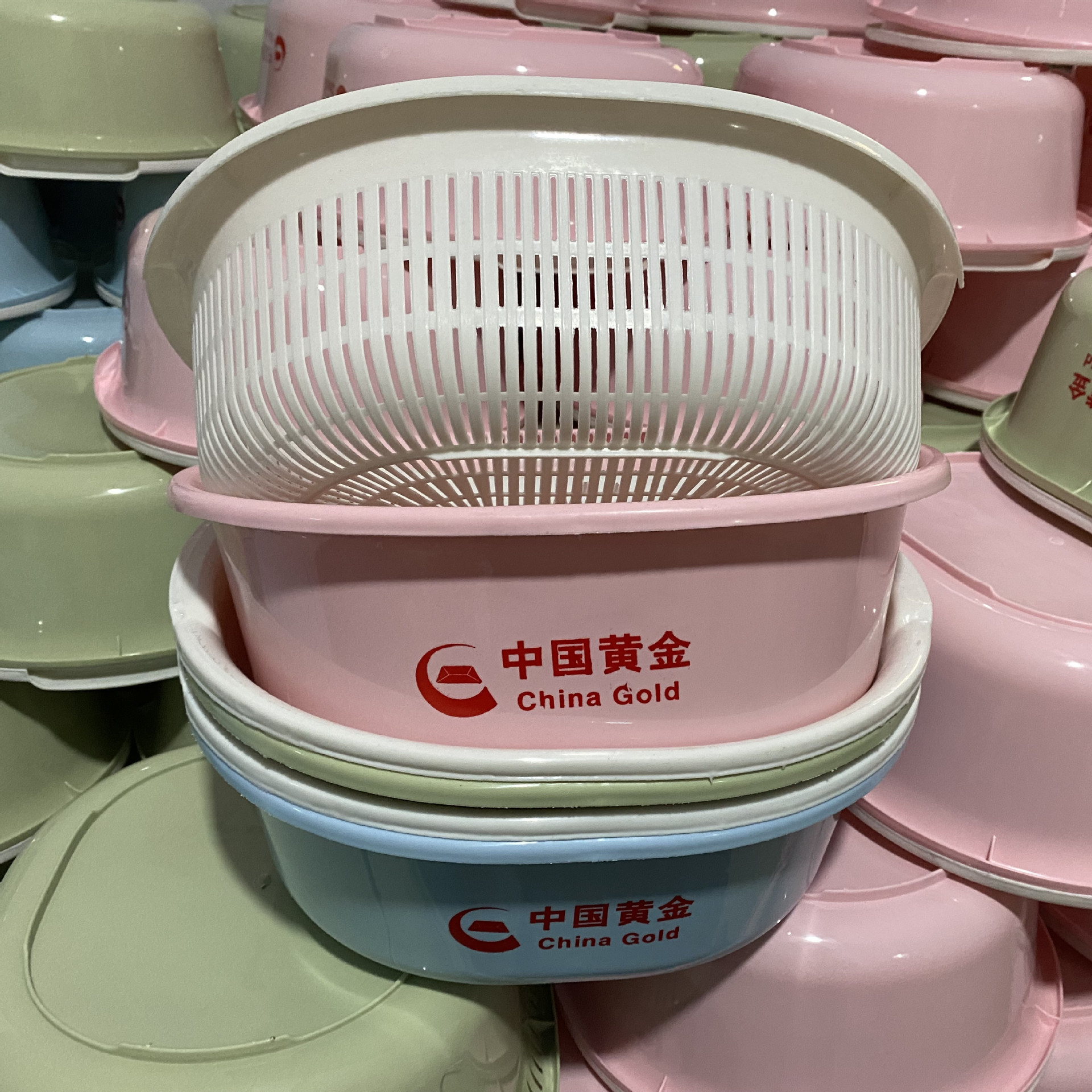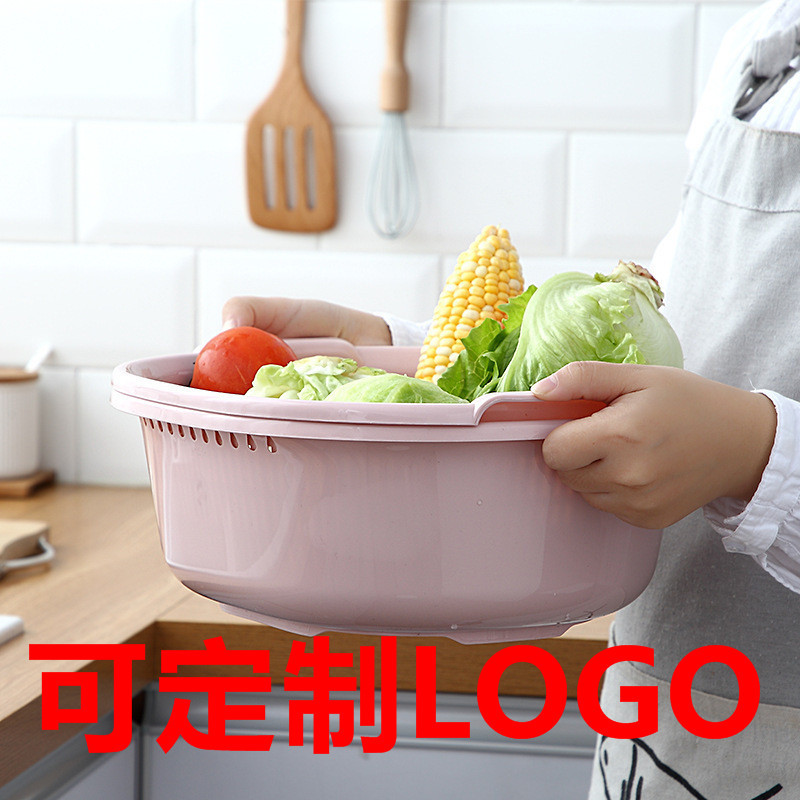Двухслойная корзина для слива Корзина для мытья овощей Корзина с фруктами Раковина для мытья овощей Пластиковая тарелка с фруктами Корзина фильтра для воды с логотипом для печати