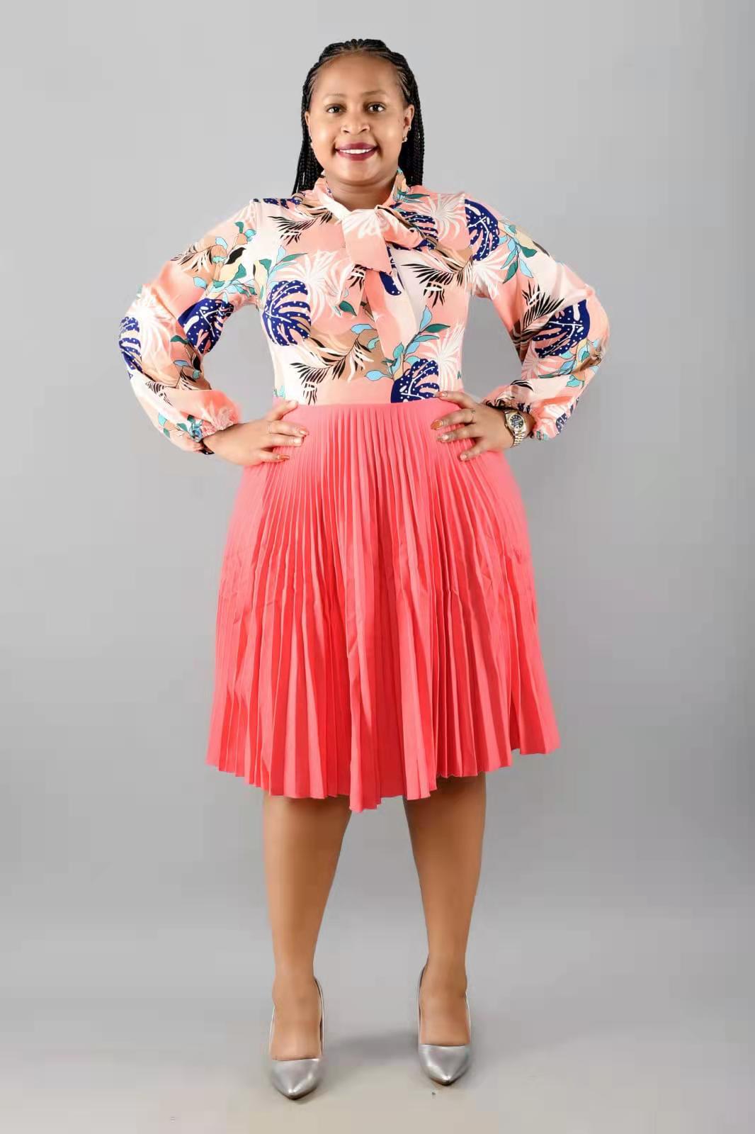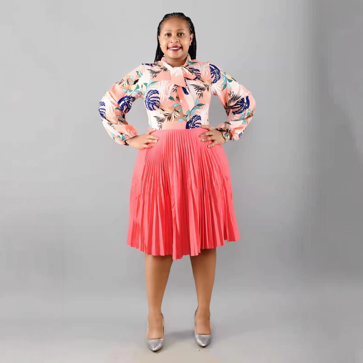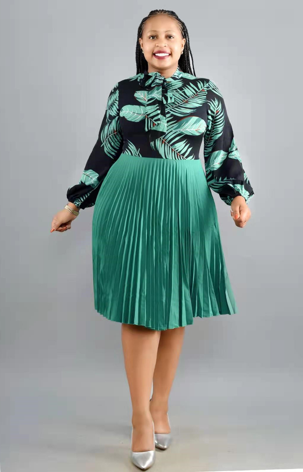 2022 Африканское женское Новое плиссированное платье больших размеров с круглым вырезом и бантом и длинными рукавами с принтом JX090