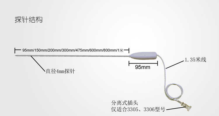 1.此温度计探针,仅匹配3305及3306型号温度计!