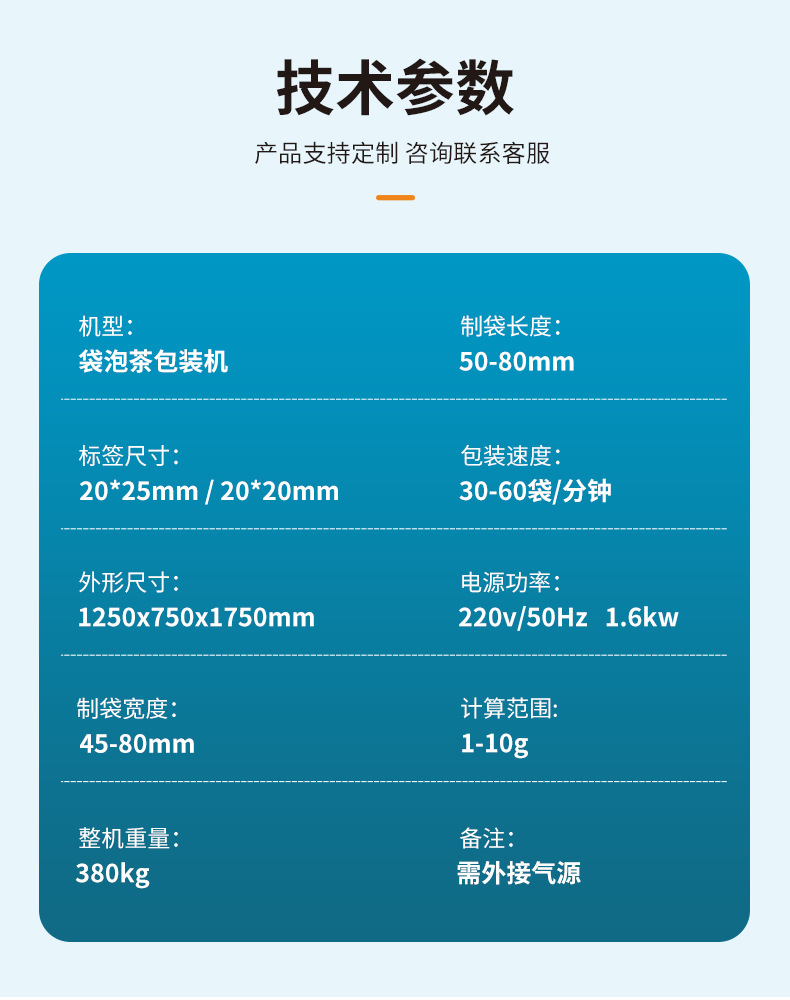 Технические характеристики; Технические характеристики; Технические характеристики; Предоплатная машина для упаковки чая