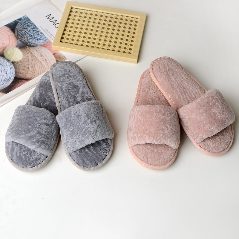 Женская домашняя обувь из Овцы и меха Модные тапочки Осенне-зимние хлопковые тапочки