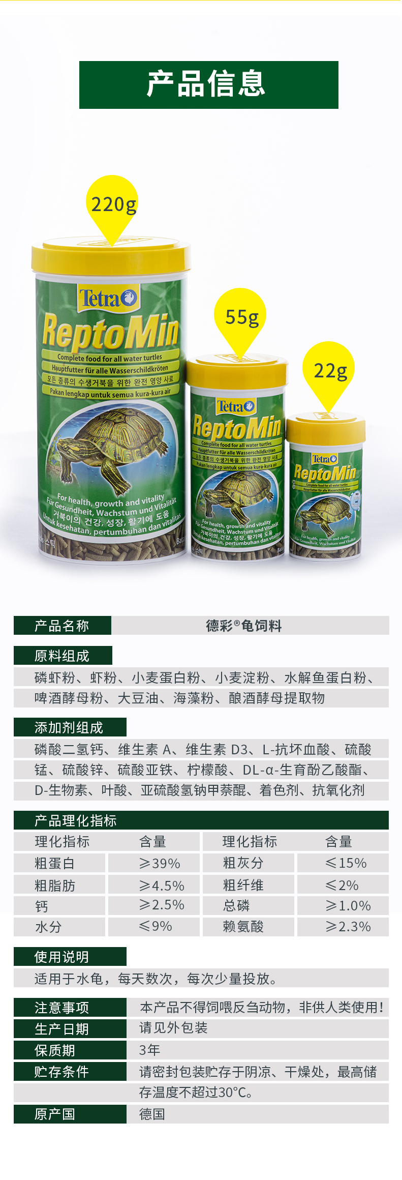 Decai 22G Черепаха корма; Decai 55 г корм для черепах; Decai 220 г корм для черепах