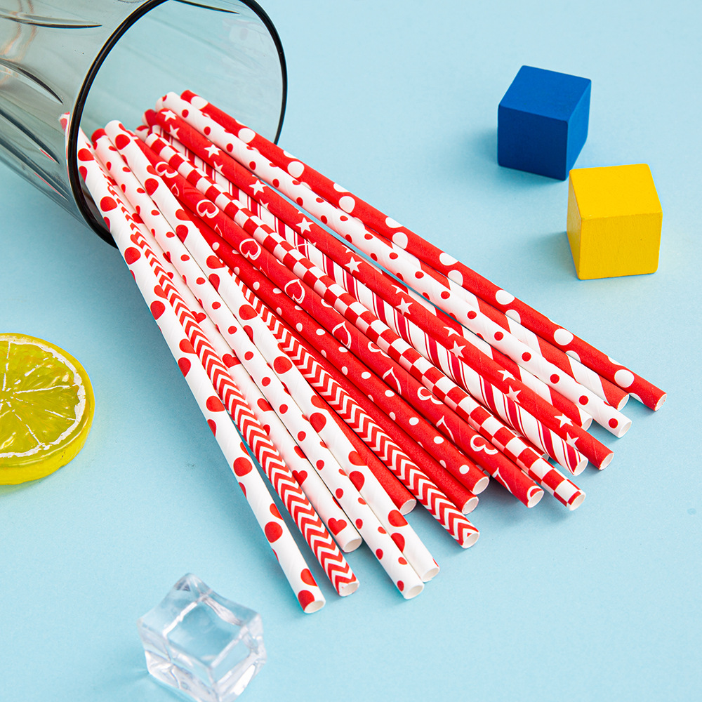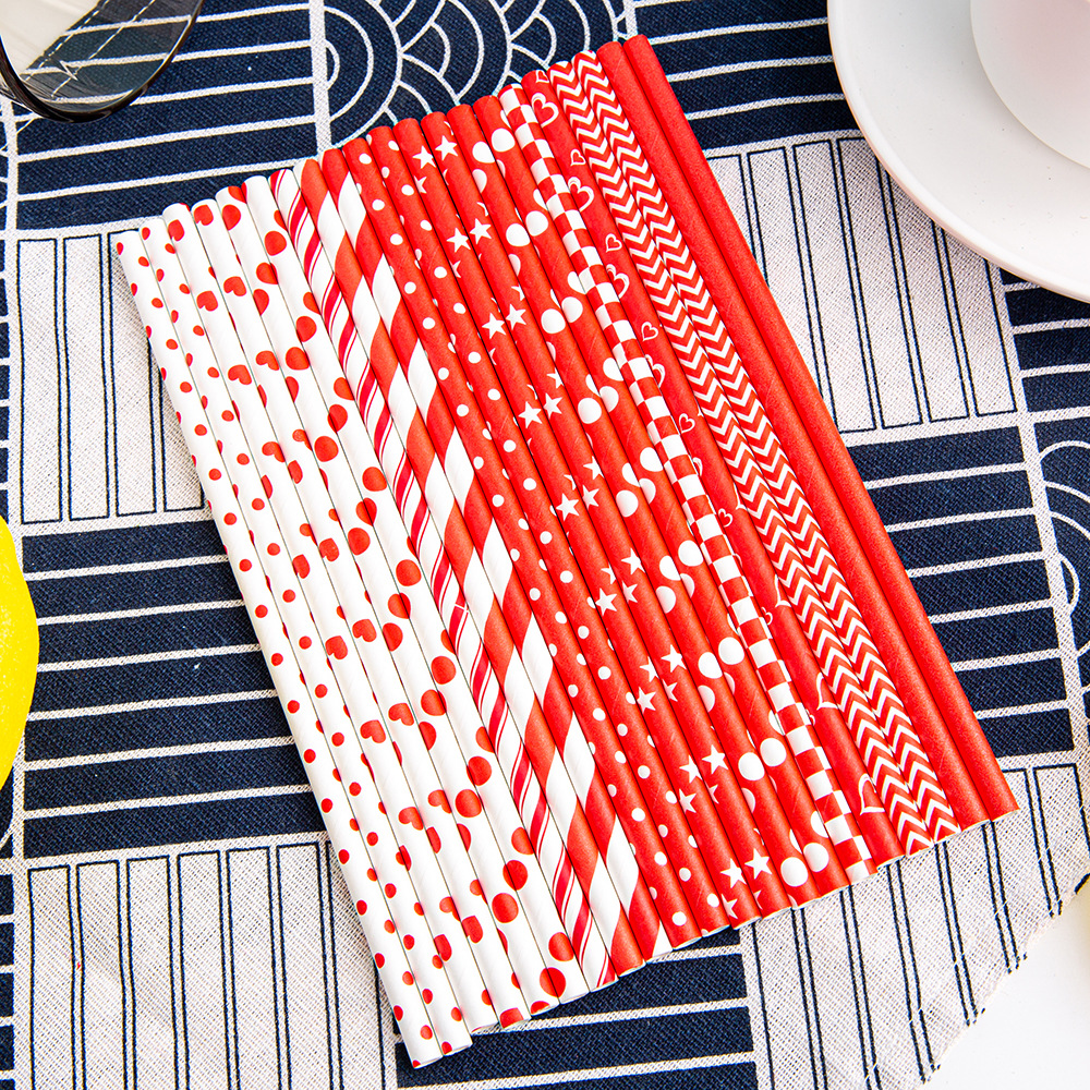Большое количество в наличии оптом одноразовые бумажные соломинки Биоразлагаемые бумажные соломинки Красная серия соломинки трансграничные Amazon