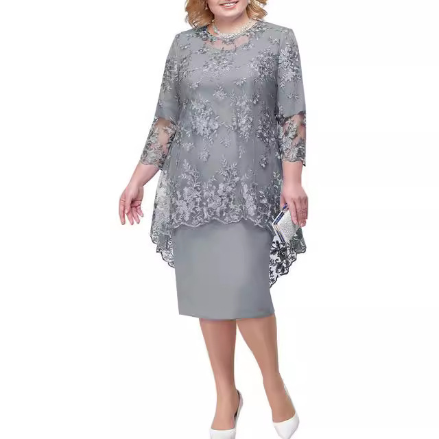 Новое европейское и американское платье больших размеров, женское вечернее платье, комплект из двух предметов с кружевной вышивкой, темпераментный облегающий крой для поездок на работу
