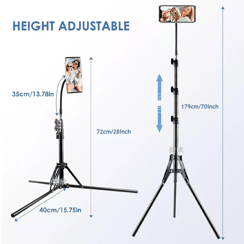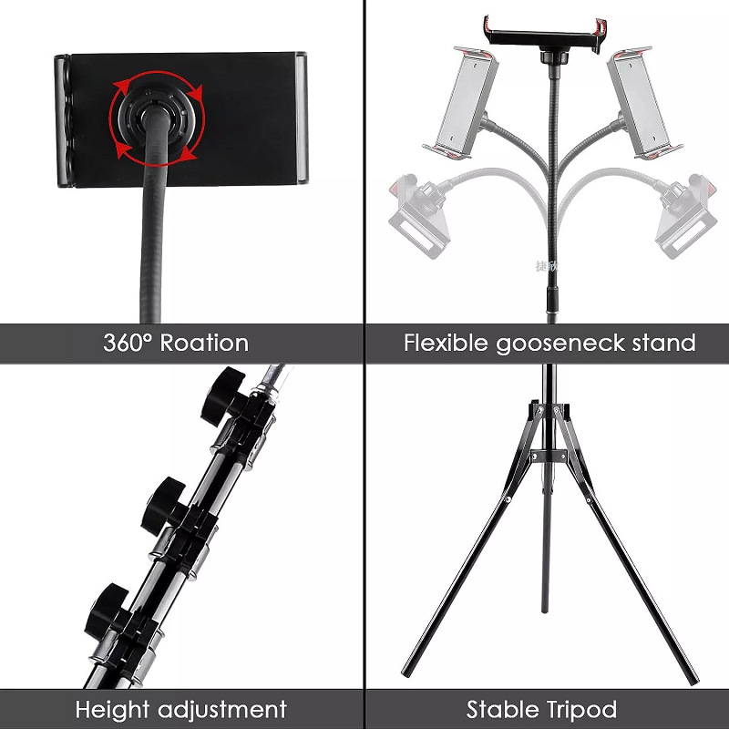 Антискладной кронштейн + зажим для мобильного телефона с одной головкой, общая высота 1.8m; Антираскладывающийся кронштейн + зажим для планшета с одной головкой, общая высота 1.8m; Нескладная подставка + двусторонний зажим для мобильного телефона, общая высота 1.8m; Напольная подставка для дисков + зажим для мобильного телефона с одной головкой, общая высота 1.8m; Напольная подставка для дисков + двуглавый зажим для мобильного телефона, общая высота 1.8m; Bluetooth-пульт дистанционного управления Селфи