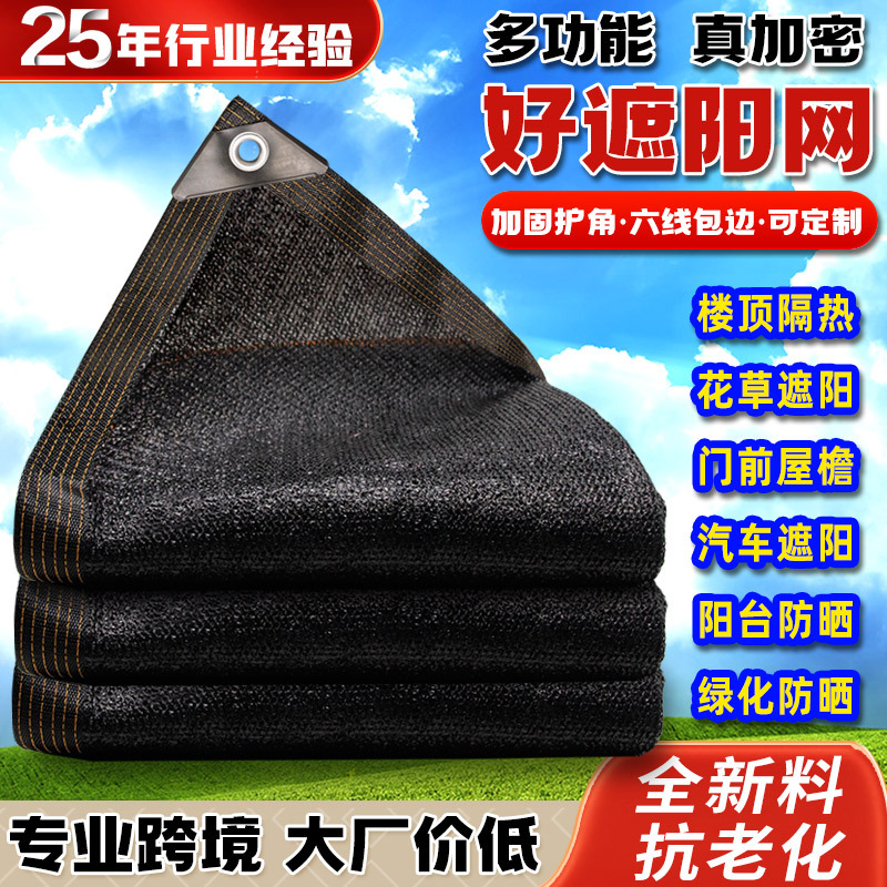 Солнцезащитная сетка, солнцезащитная сетка, зашифрованный и утолщенный черный край, теневая сетка для цветов во дворе и зеленых растений, изоляционная сетка для крыши.