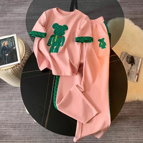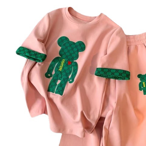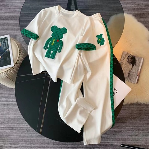 Повседневный спортивный костюм для женщин, лето 2023, новый модный уличный стиль, уменьшающий возраст, широкие брюки с короткими рукавами и круглым вырезом, комплект из двух предметов