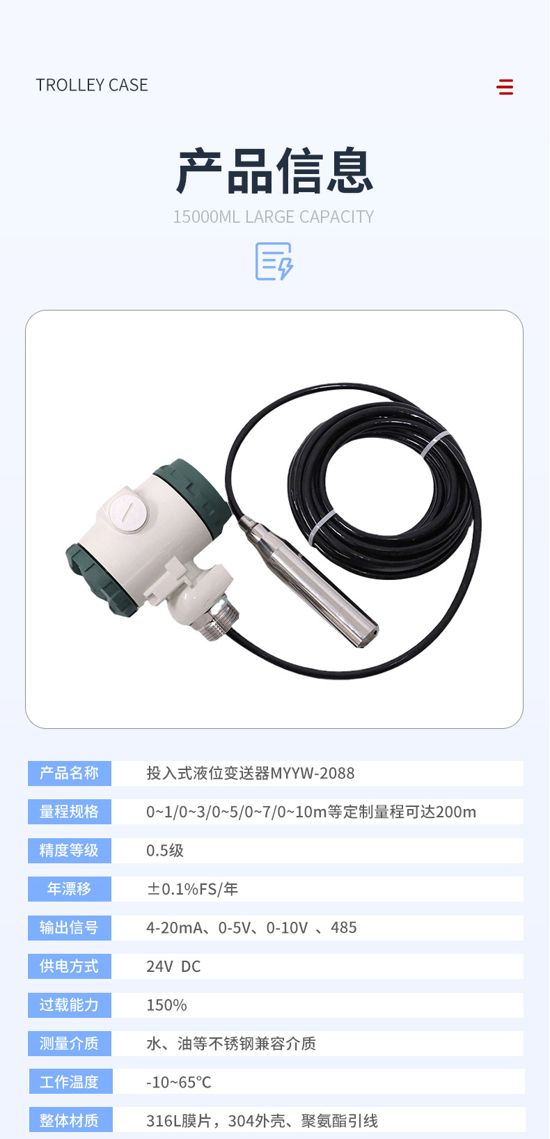 Погружной датчик уровня жидкости