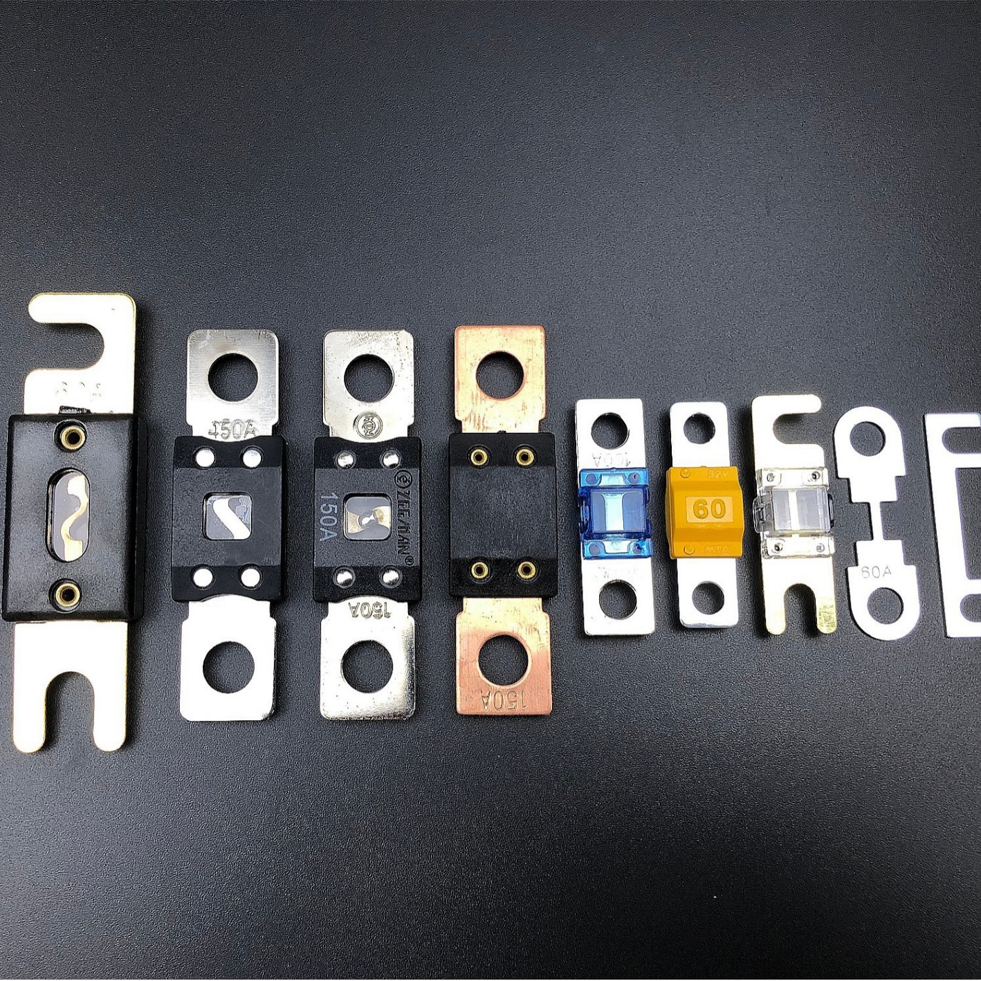 20А; 30А; 40А; 50А; 60А; 70А; 80А; 100А; 120A; 125A; 130А; 150A; 160А; 175А; 200А; 250А; 300А; 350А; 400А; 450А; 500А; 600А; 800A; Полностью прозрачный блок предохранителей; Черный нижний блок предохранителей; Черный нижний блок предохранителей с ушками; Бакелитовый держатель предохранителя; Керамический держатель предохранителя; Двойной держатель предохранителя; 4-позиционный блок предохранителей; 6-позиционный блок предохранителей