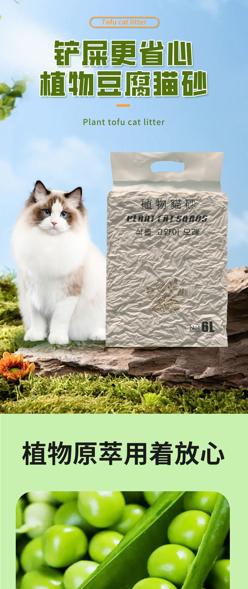 6L растительный кошачий песок 1.5mm смешанный кошачий песок четыре в одном тофу бентонит с низкой пылью
