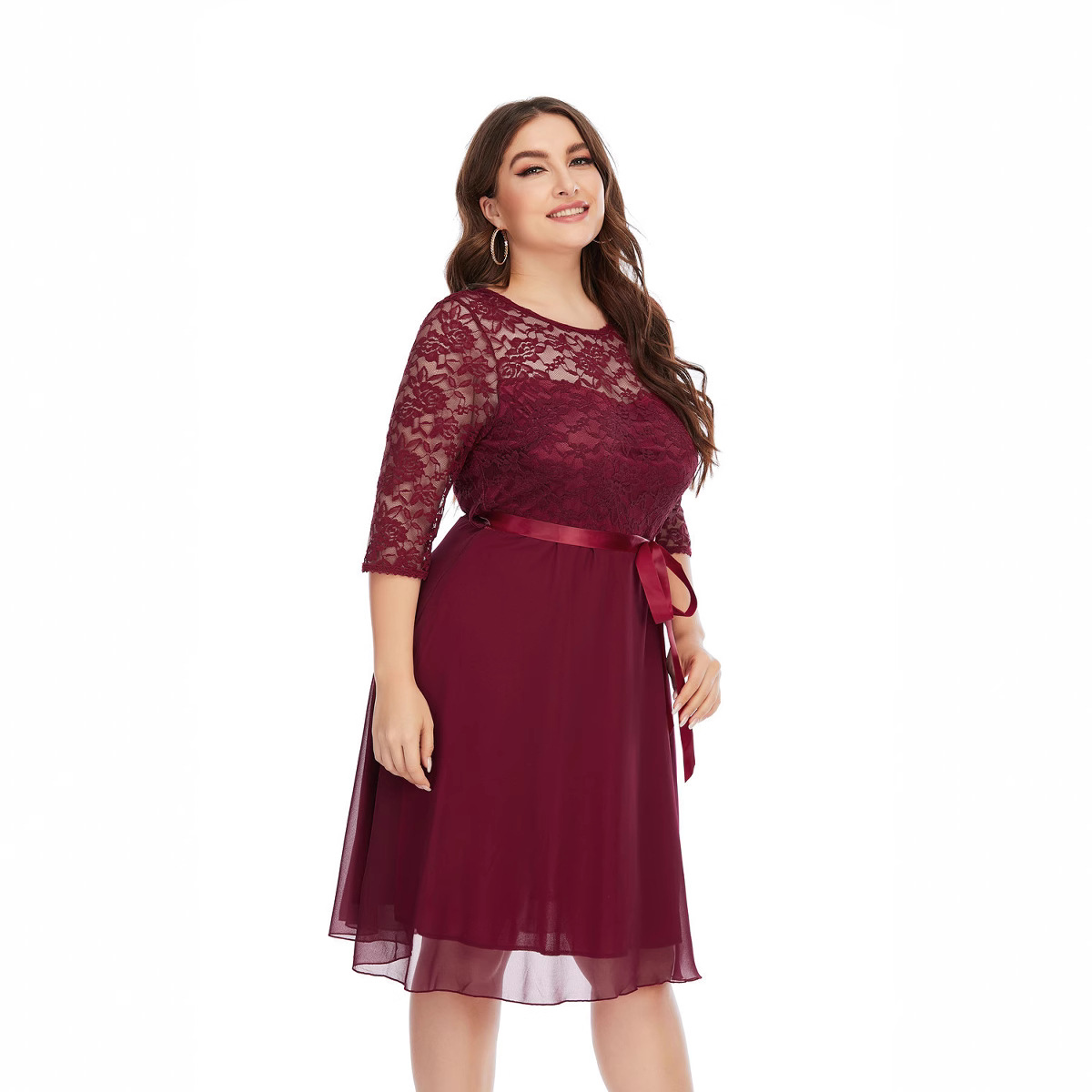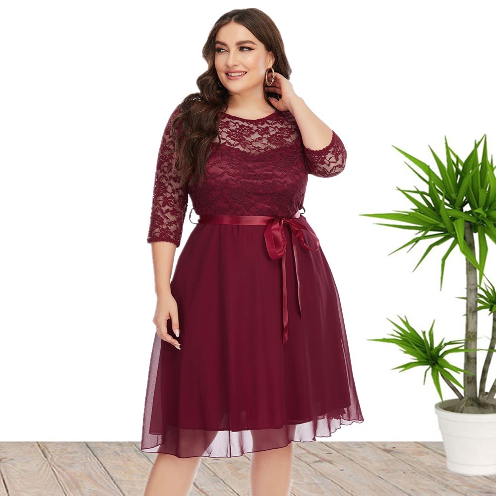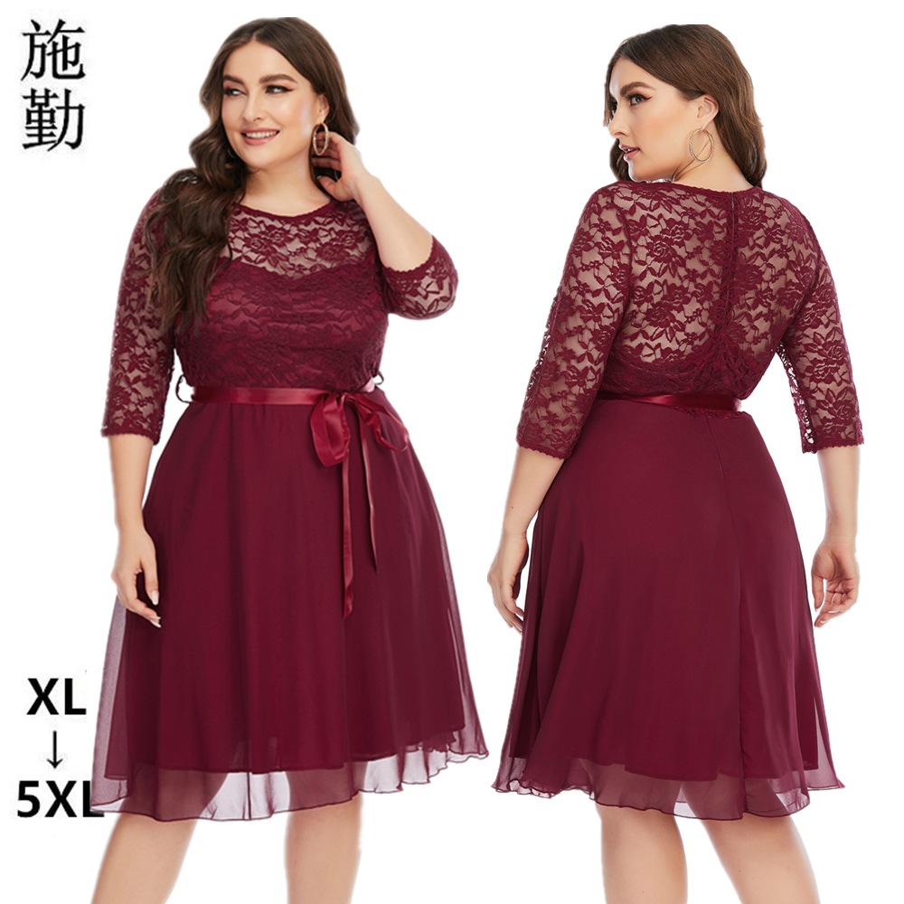2024 Европа и США плюс размер внешней торговли женская летняя новая кружевная шифоновая сшивание платье платье платье Sq0155