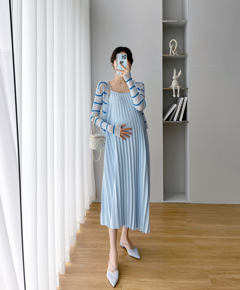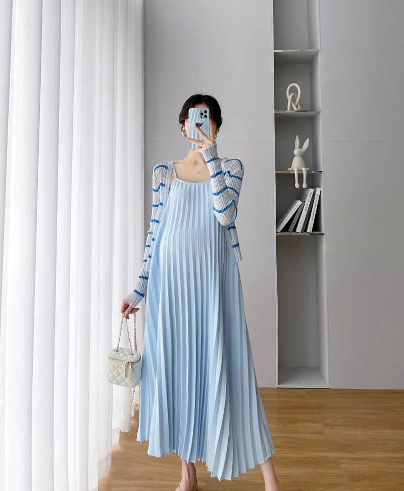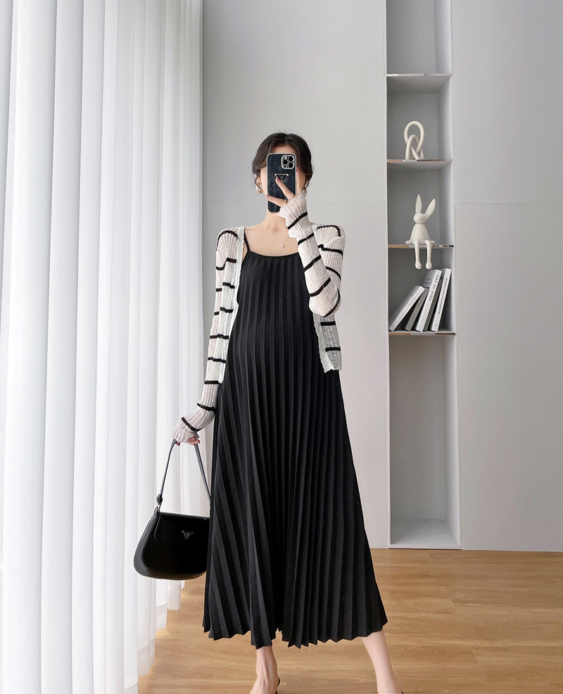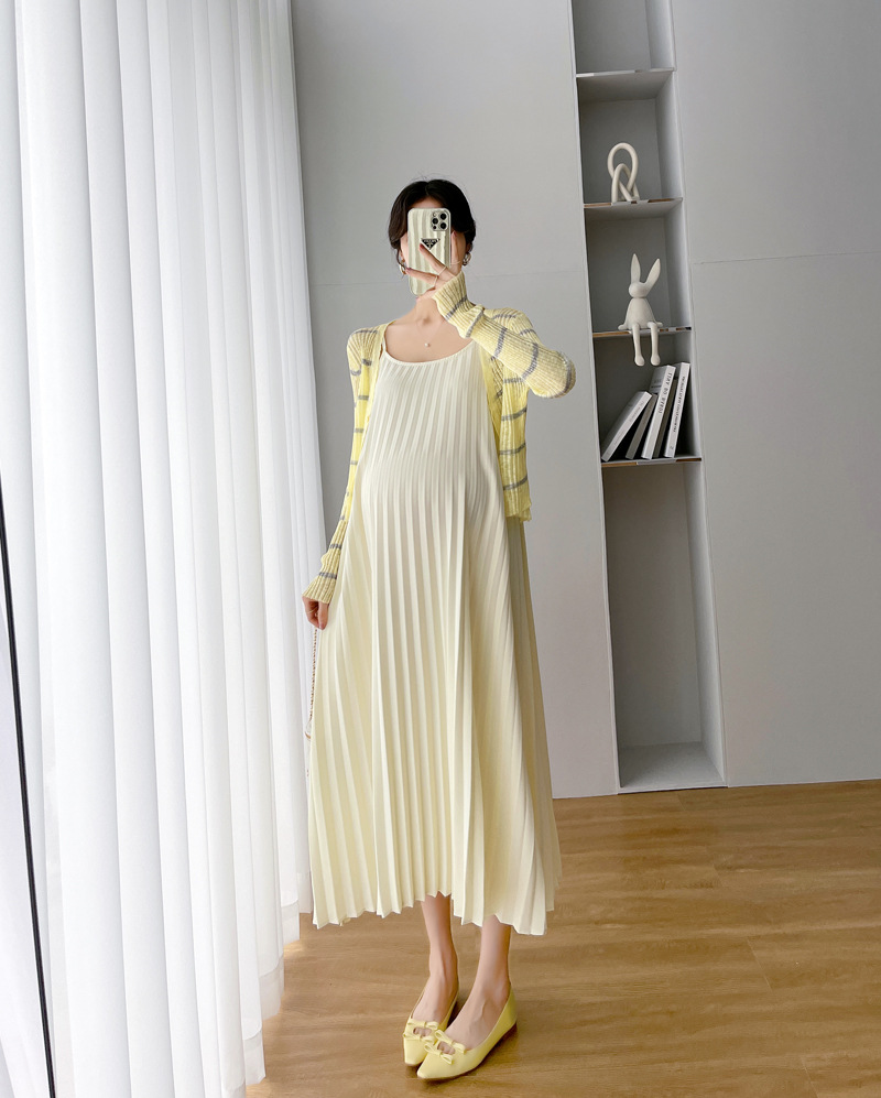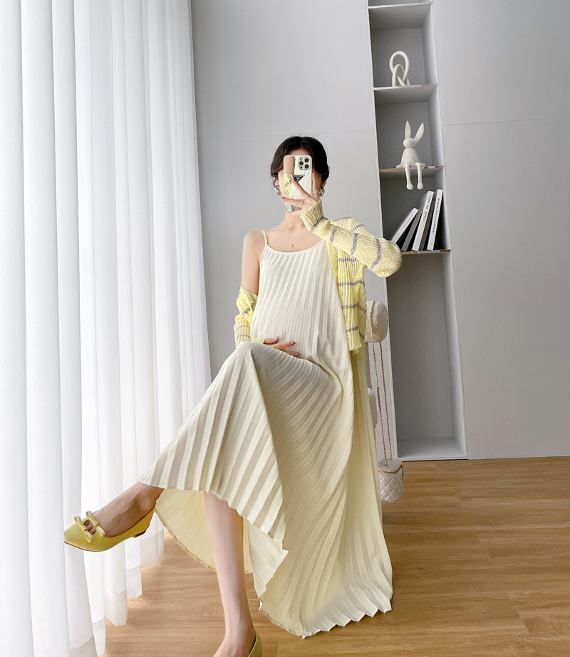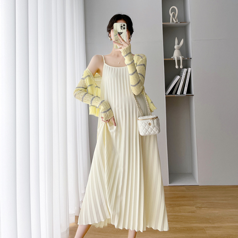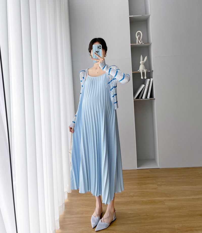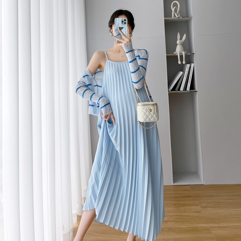 Интернет-знаменитость Материнство плюс размер Комплект из двух предметов для беременных женщин Плиссированная юбка для беременных с ремнем для костюма для беременных