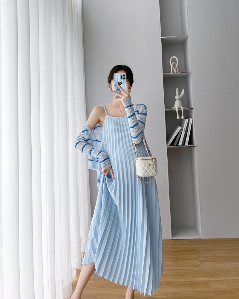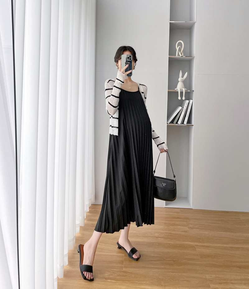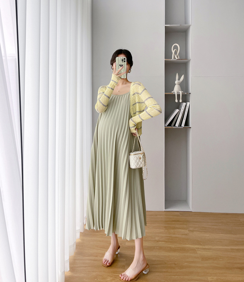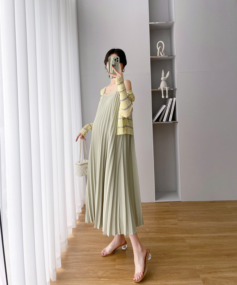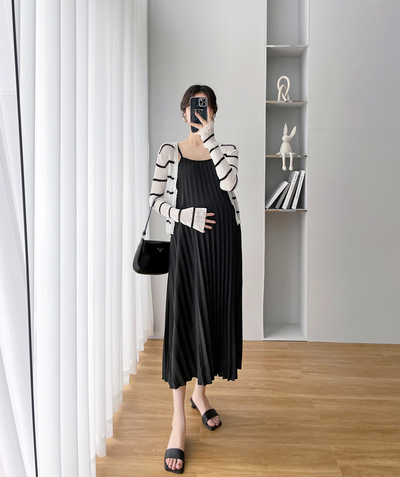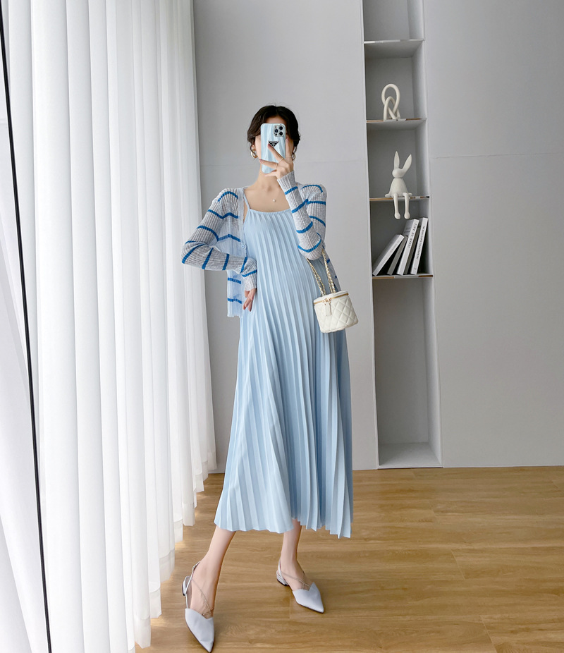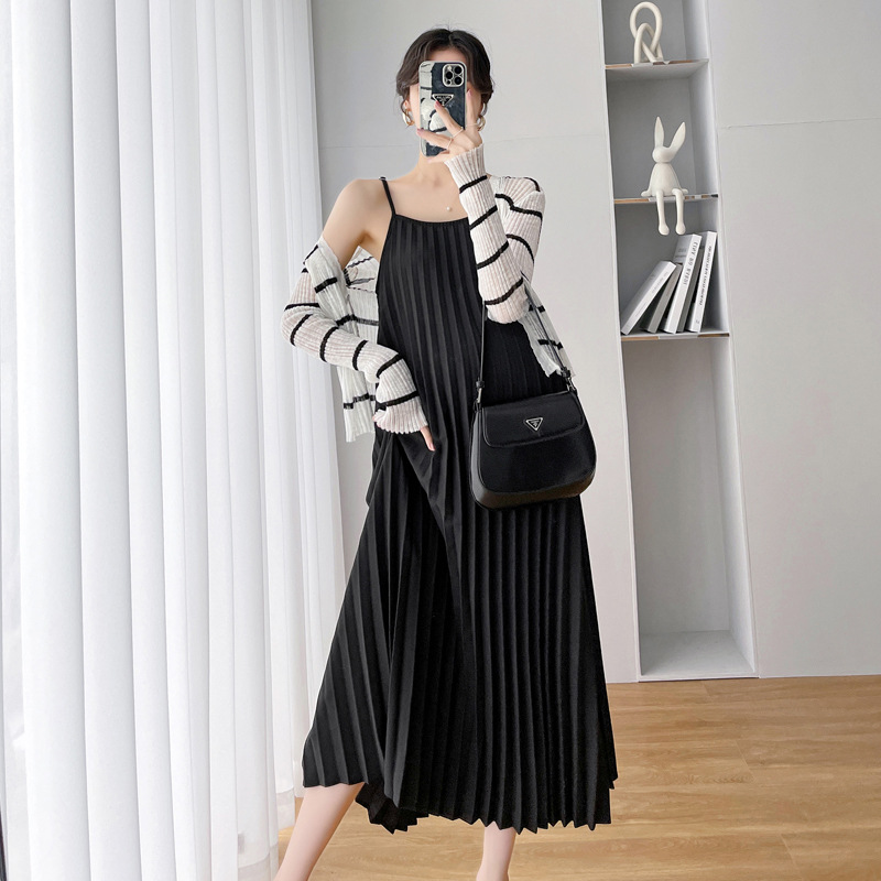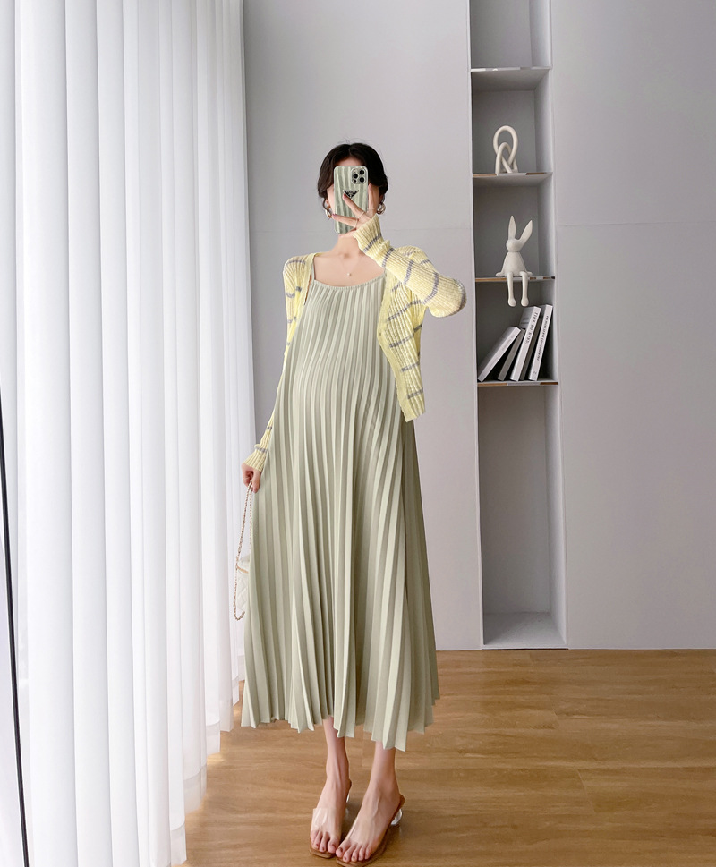 Интернет-знаменитость Материнство плюс размер Комплект из двух предметов для беременных женщин Плиссированная юбка для беременных с ремнем для костюма для беременных