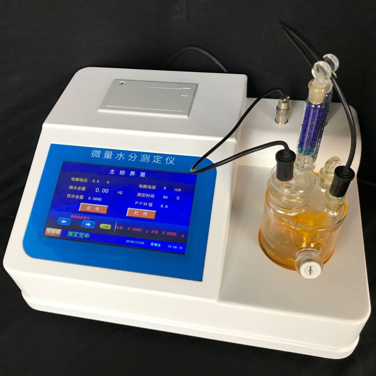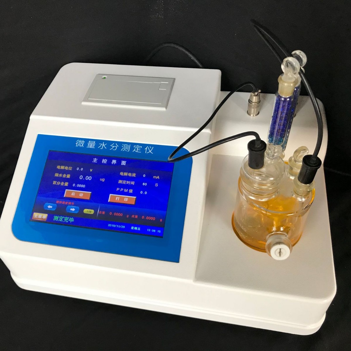 ※全密封滴定池瓶,样品测定过程由仪器自动控制,搅拌、测定60秒左右自动完成,直接显示测定结果