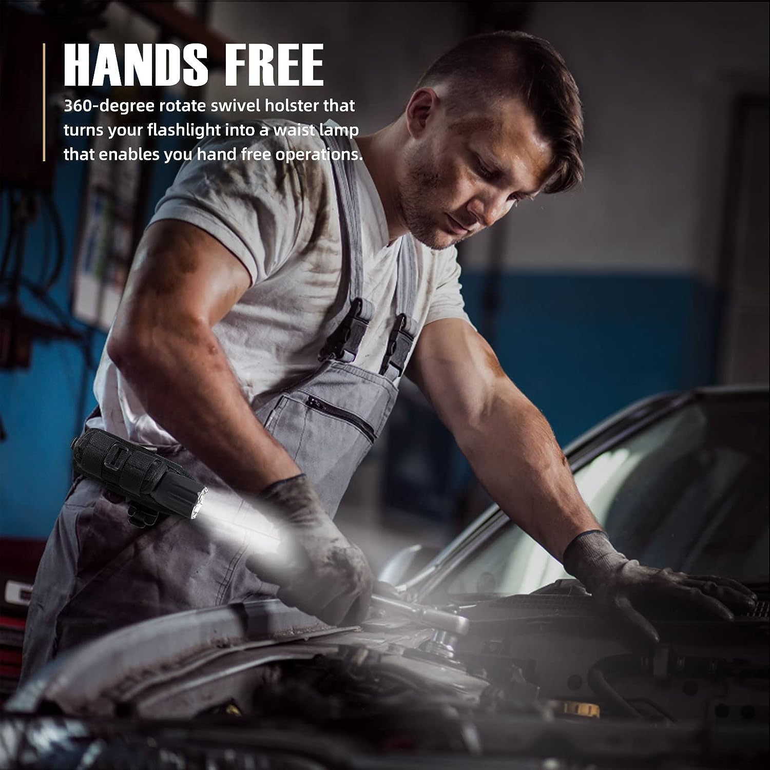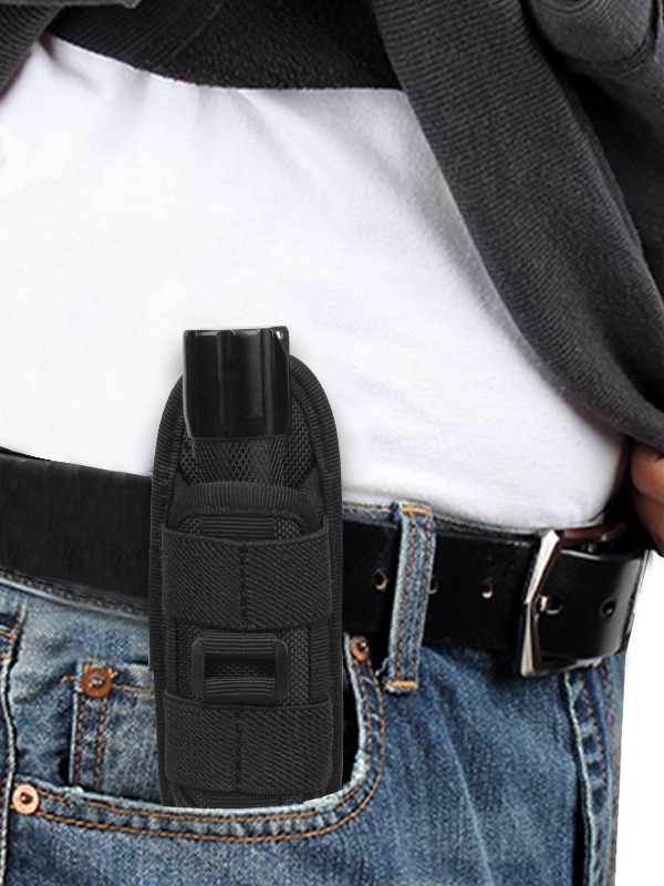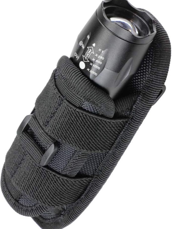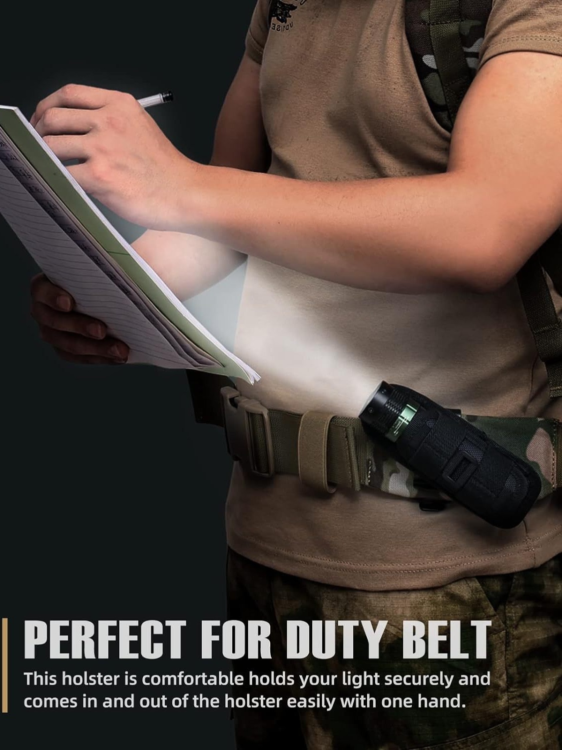 Tactical Flashlight Pouch Holster, Rotatable Flashlight Holder Belt Clip Tactical Torch Carry Case with 360 Degree Carabiner Reel Clip