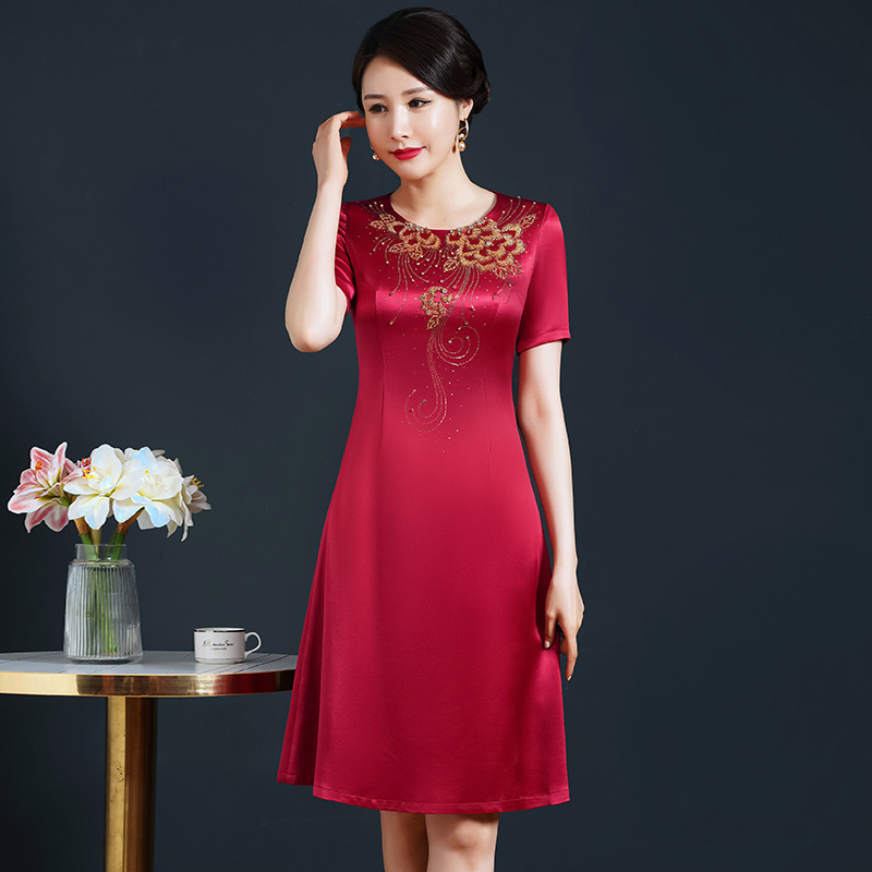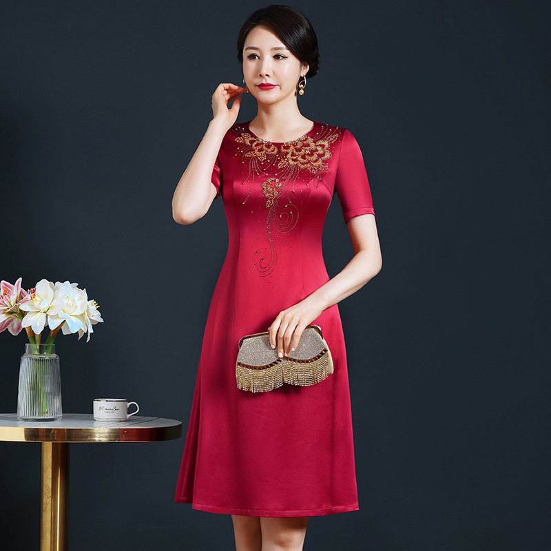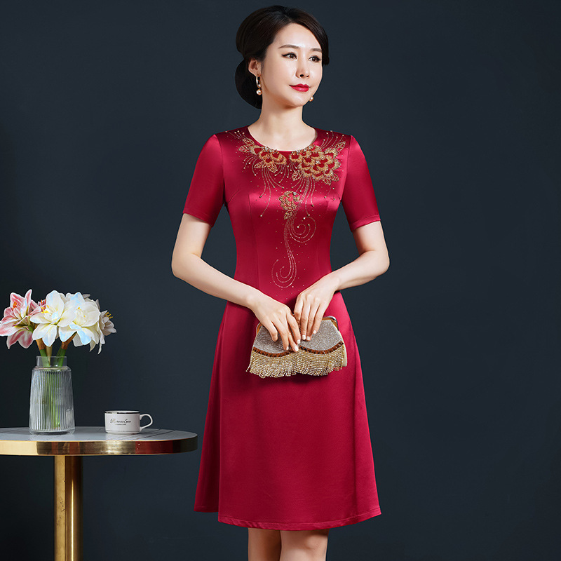Wow ацетатное свадебное платье для матери, платье Cheongsam с вышивкой, популярное свадебное платье средней длины для молодой свекрови, свадебный банкетный наряд
