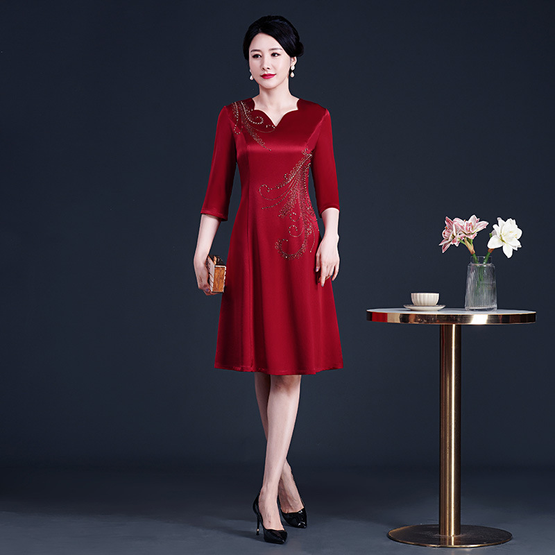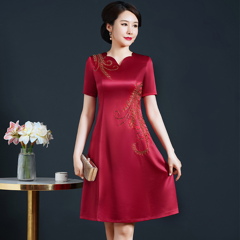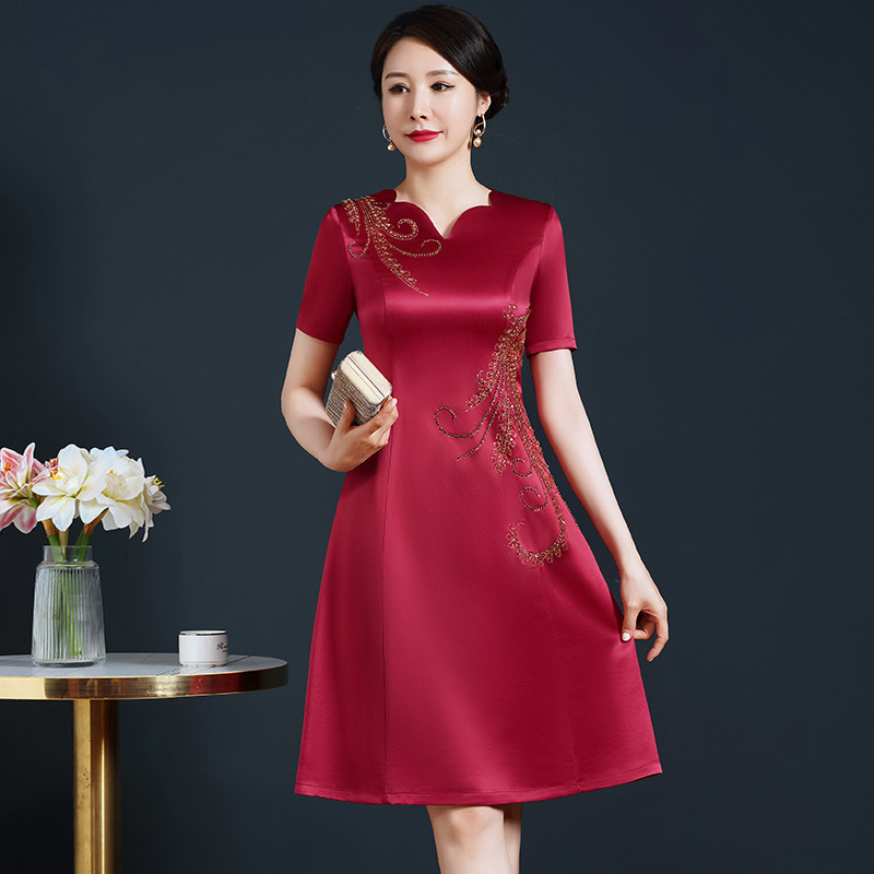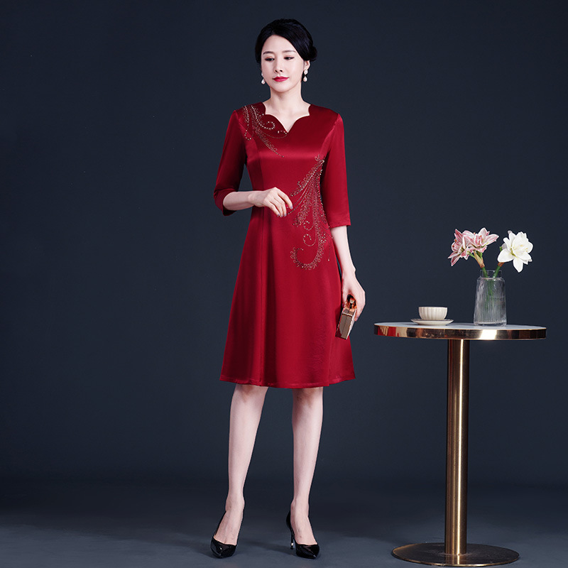 Свадебное платье для молодой мамы из ацетата, чонсам 2025, новый стиль, улучшенное платье для свадебного банкета для свекрови