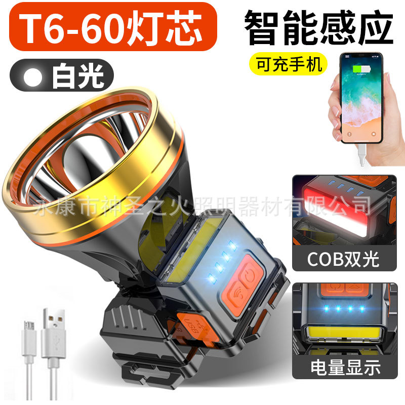 Фара светодиодная Ночная рыбалка на открытом воздухе супер яркий литиевый фонарик Сильный свет зарядка наголовная Индукционная Шахтерская Лампа дальнего действия оптом
