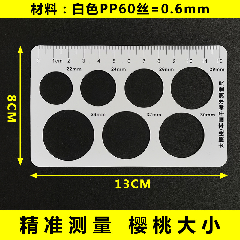 Круглая линейка черники с четырьмя отверстиями; Круглая линейка черники с тремя отверстиями; Круглая линейка черники с двумя отверстиями; Круглая линейка черники (одно отверстие = 22 мм).; Круглая линейка черники (одно отверстие = 20 мм).; Круглая линейка черники (одно отверстие = 18 мм).; Круглая линейка черники (одно отверстие = 15 мм).; Круглая линейка черники (одно отверстие = 12 мм); Длинная линейка черники нового типа (4 отверстия); Длинная линейка черники нового типа (3 отверстия); Серия измерительная линейка «Черника» (5 отверстий); Серия измерительная линейка «Черника» (9 отверстий); Измерительная линейка «Вишня» (одно отверстие 26 мм); Измерительная линейка вишни (одно отверстие 28 мм); Измерительная линейка «Вишня» (одно отверстие 30 мм); Измерительная линейка «Вишня» (одно отверстие 32 мм); (Тип серии с 7 апер처ами) большая измерительная линейка вишневого/вишневого цвета; (материал ПП) измерительная линейка вишни; Утолщенная измерительная линейка из ПВХ вишни; (14X15CM) Стандартная измерительная карта Cherry; Удлиненная измерительная линейка вишневого/вишневого цвета