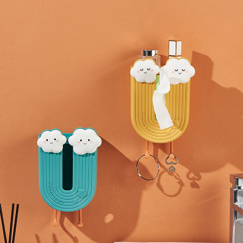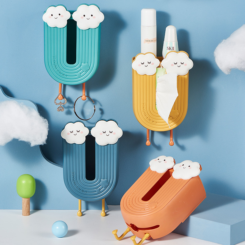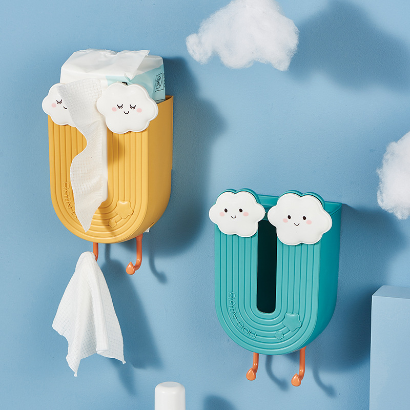 Бытовая настенная коробка для салфеток, бесшовная коробка для салфеток без пробойника, милая облачная коробка для салфеток, коробка для хранения полотенец для лица