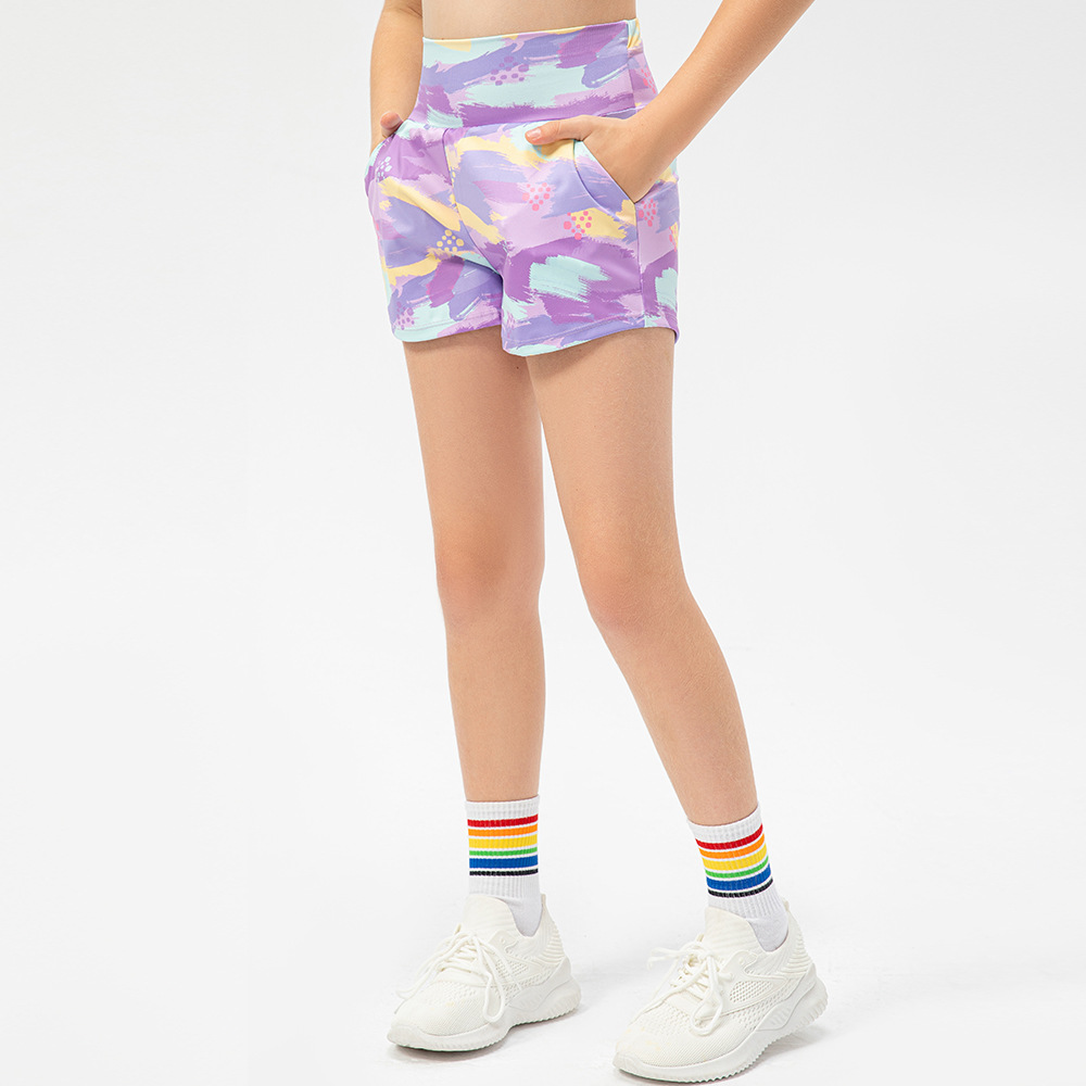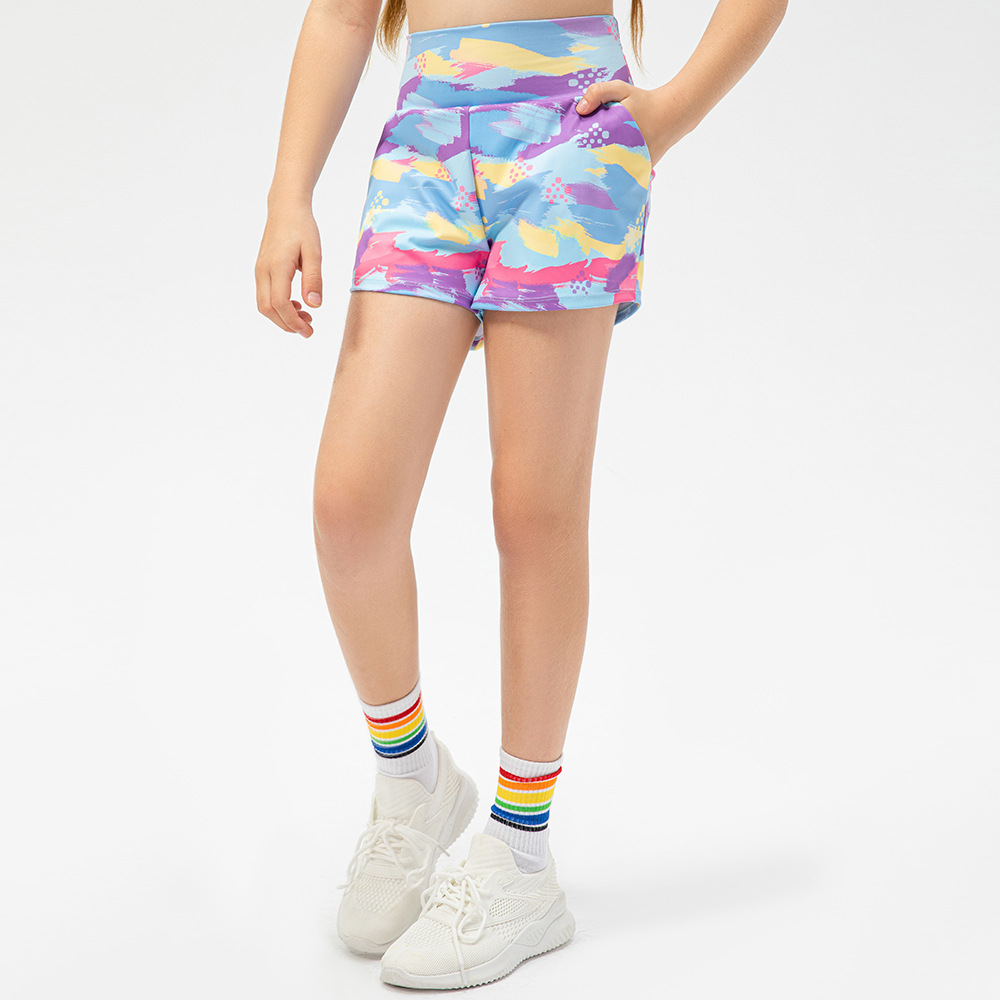 Печатные детские брюки для бега нейлон Йога фитнес-шорты для девочек влагу тренировочные брюки 23408