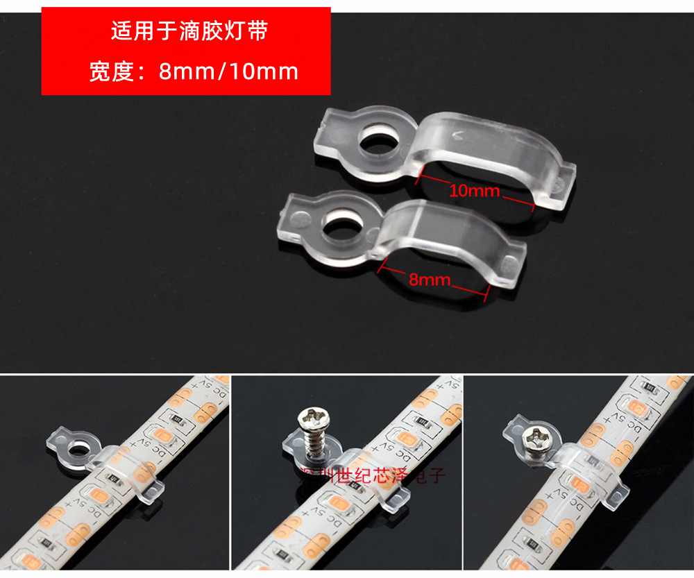 Крепежный зажим для светодиодной ленты 8 мм 10 мм 12 мм, прозрачный изогнутый крепежный зажим для винта с одним отверстием