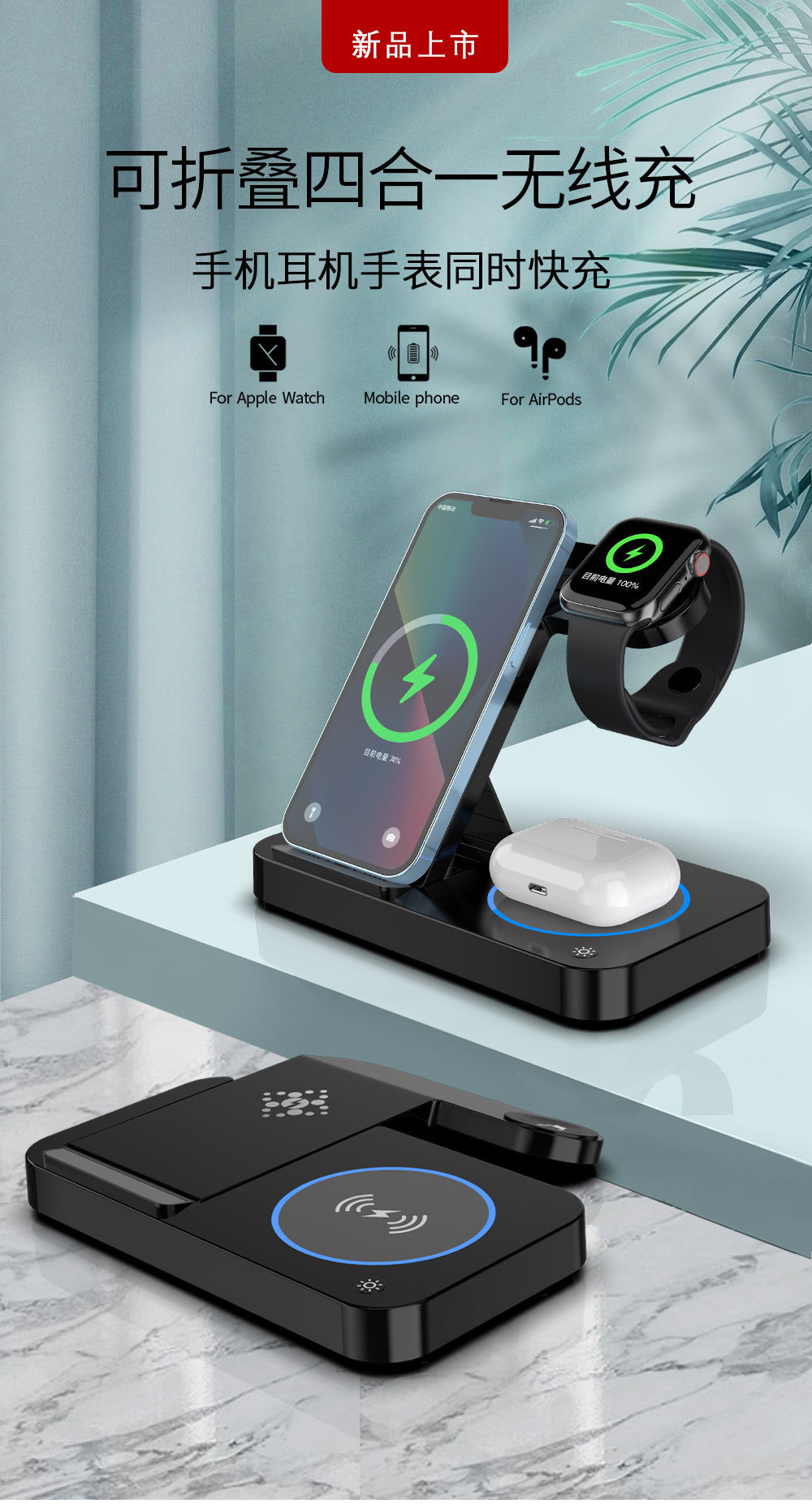 Частная модель складное Беспроводное зарядное устройство «четыре в одном» для часов-гарнитуры для мобильного телефона Apple, многофункциональное Беспроводное зарядное устройство