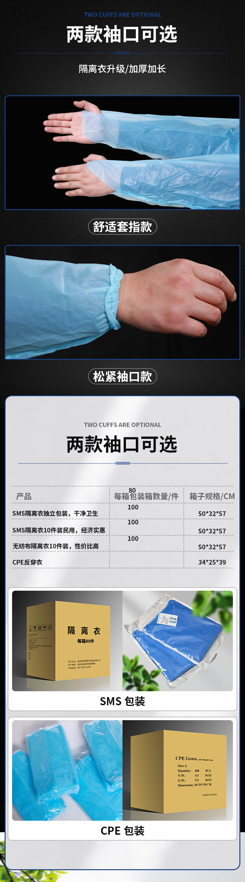 CPE большой палец рот независимая упаковка; Независимая упаковка с резиновой лентой CPE; ПП нетканый 35 г гражданский; СМС изолирующий халат анти-износ 10 штук; Упаковка независимого анти -- носки одежды изоляции СМС