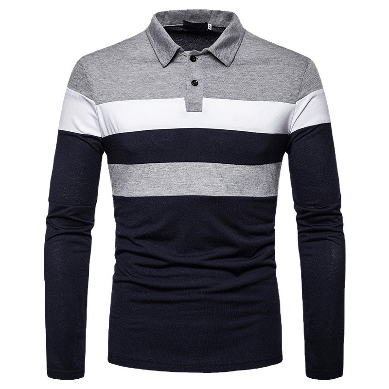 Осень 2023 Новая Трехцветная модная дизайнерская Повседневная футболка с лацканами и длинным рукавом, Мужская футболка с длинным рукавом