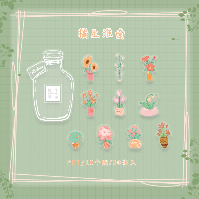 Цветочная бутылка и серия наклеек для цветов Красивый день INS Свежий ручной счет DIY декоративные наклейки 30 в 8