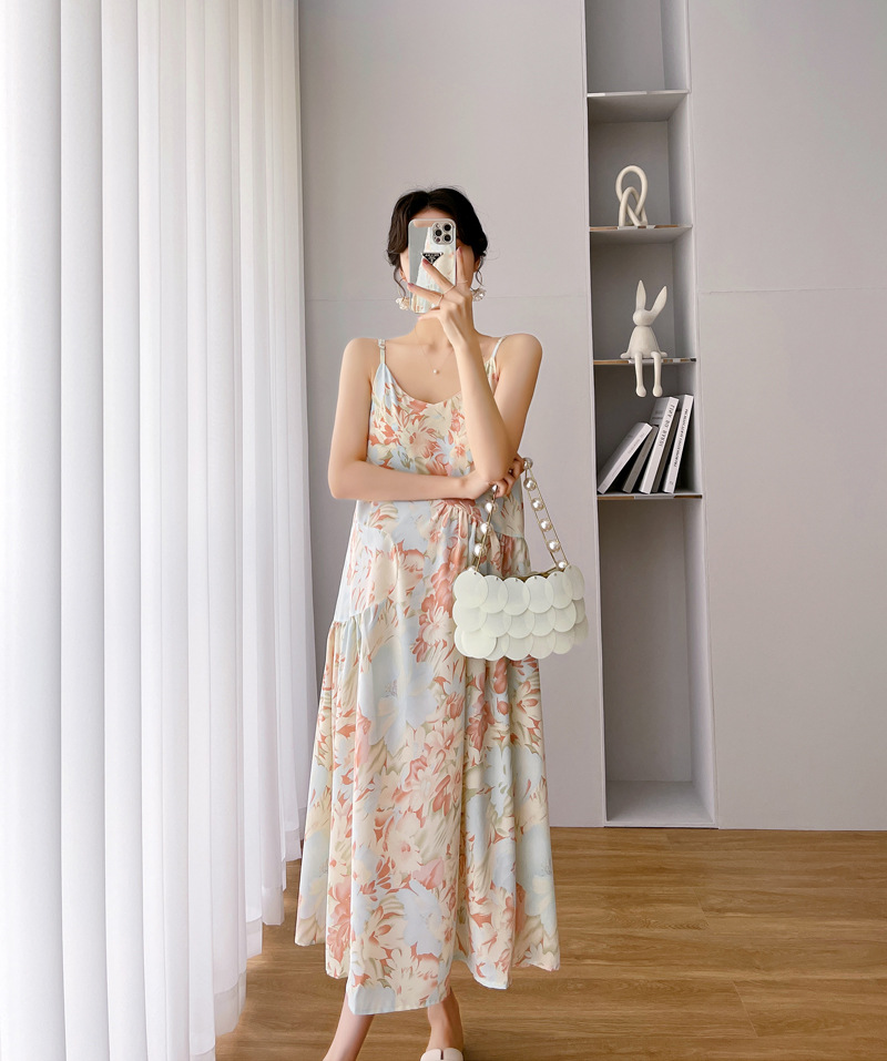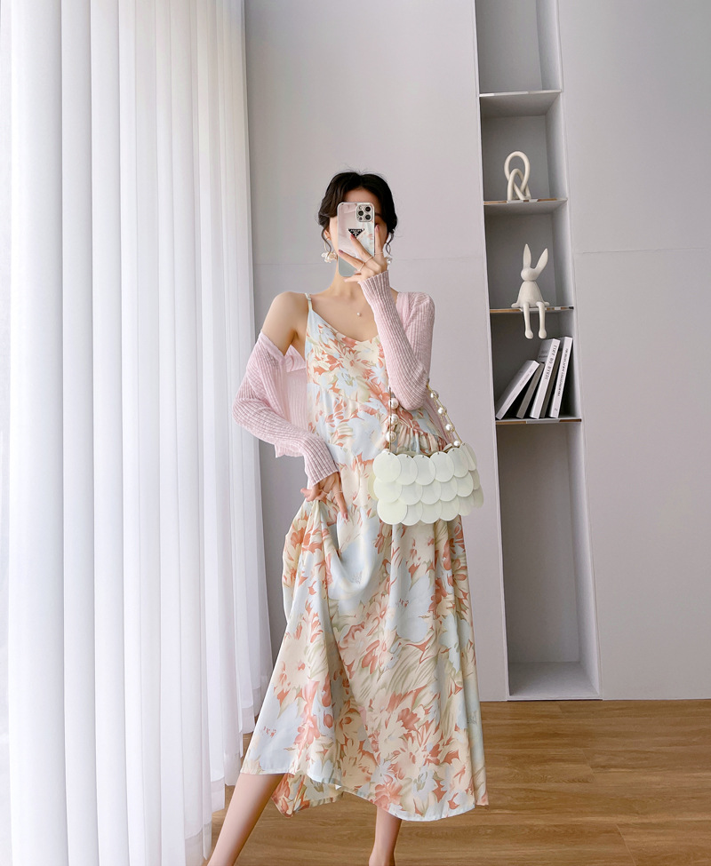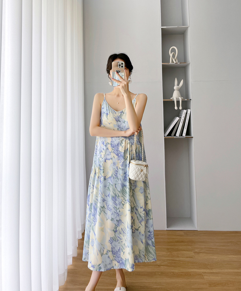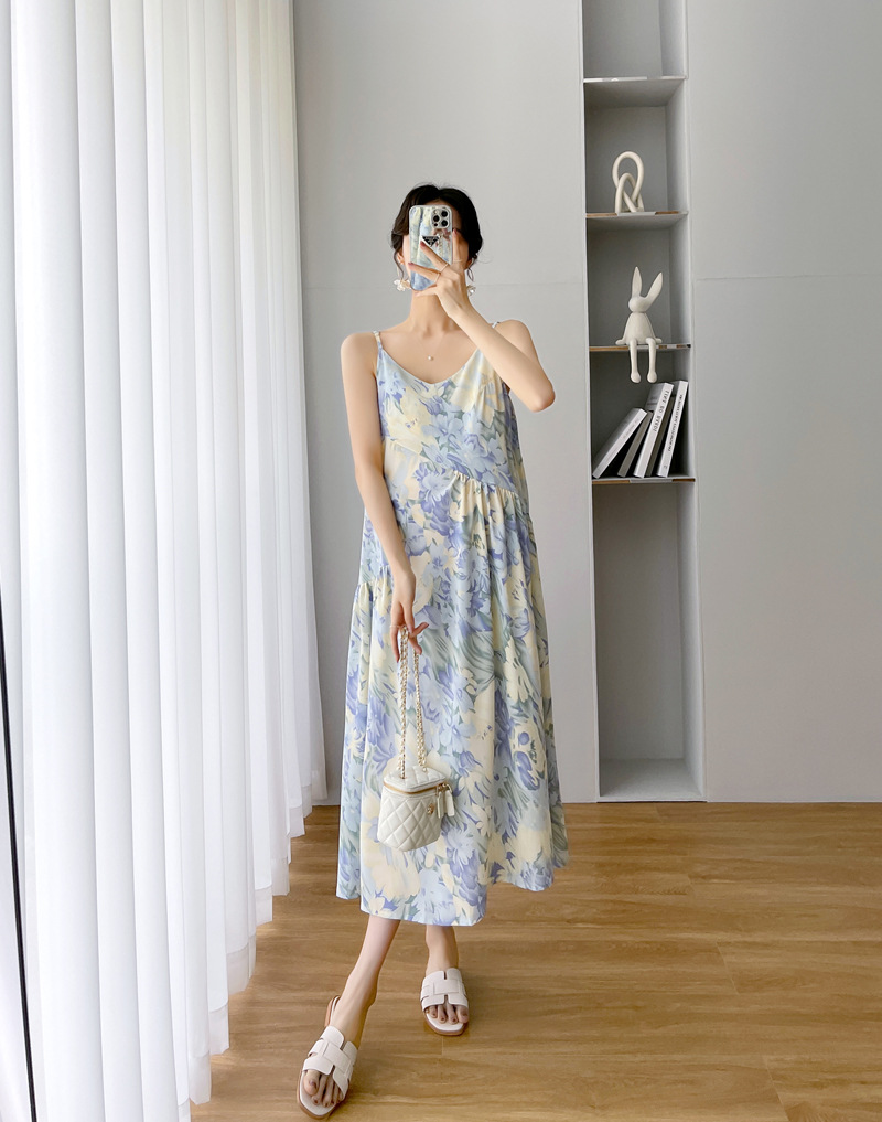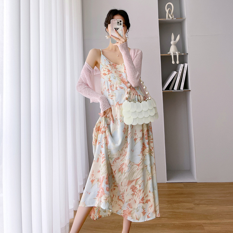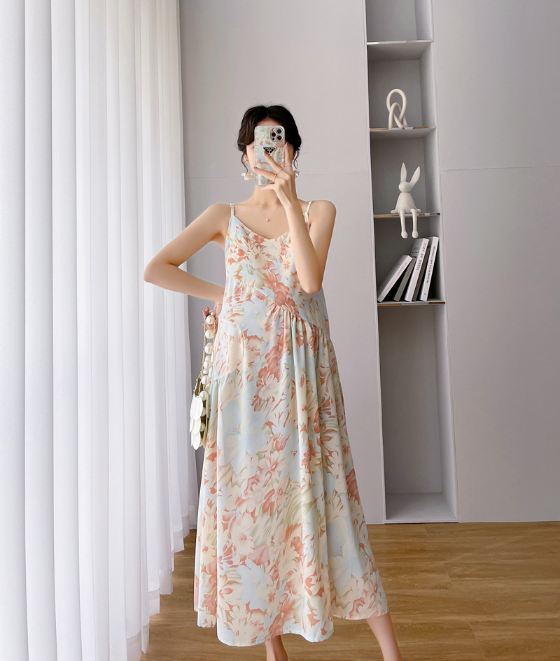 Костюм для беременных, летнее тонкое шифоновое платье с цветочным принтом, уменьшающее Возраст платье + солнцезащитный топ из двух предметов