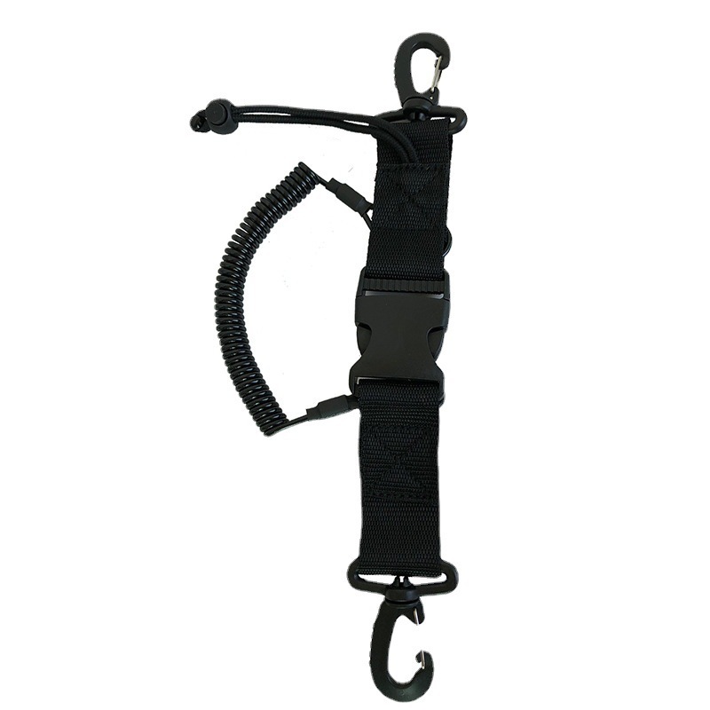 产品颜色:实黑色产品材质:PU+PP织带+塑料勾产品规格:绳子可拉伸1.5米产品单重:55克产品包装:散装适数入袋适用范围:潜水相机 潜水用品配件