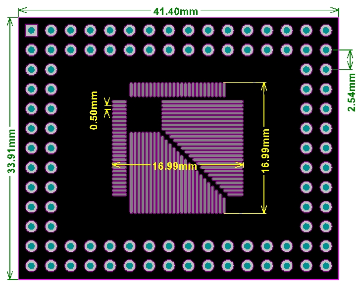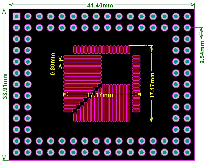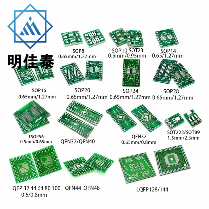 引脚间距0.5mm,适用于将常用QFP、TQFP、LQFP、FQFP等兼容32pin~100pin的封装转接成DIP直插