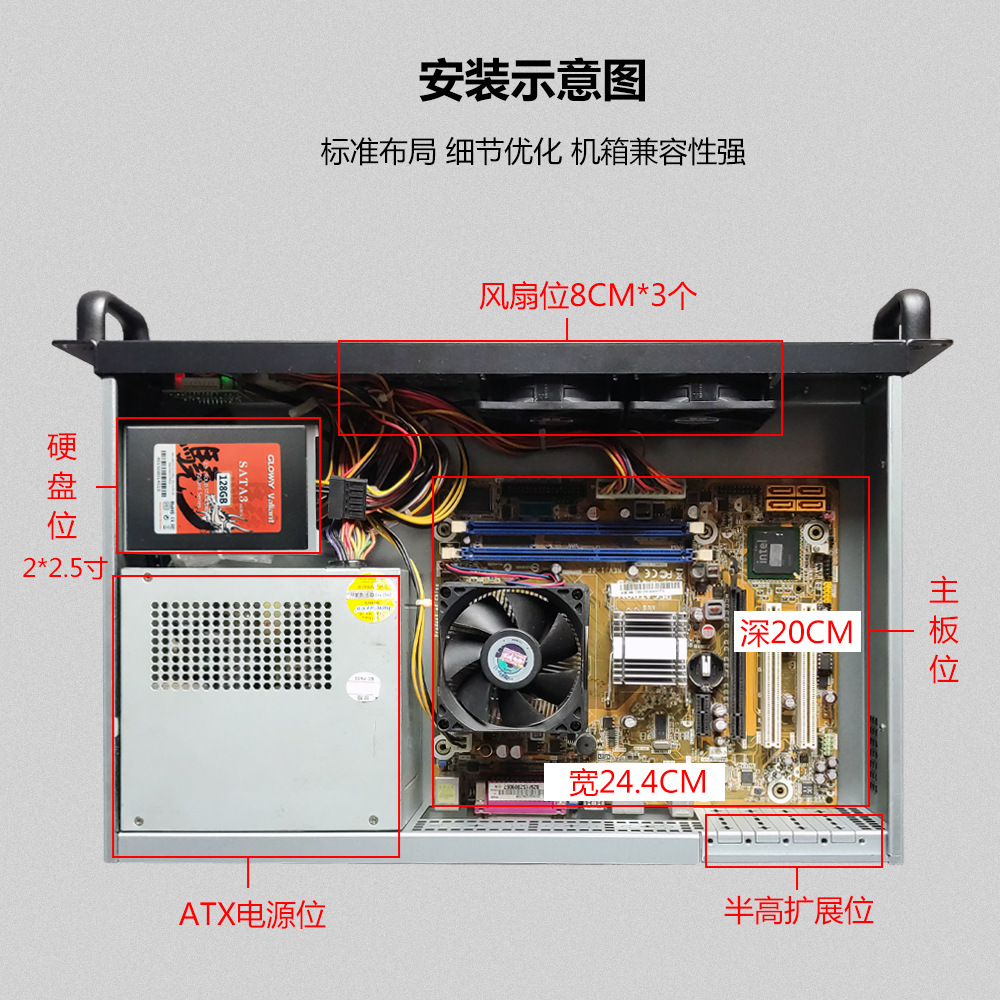 Заводское индивидуальное 2U промышленное шасси управления, короткое мини-280 мм, без форм, лазерная резка, толстый лист, промышленный черный