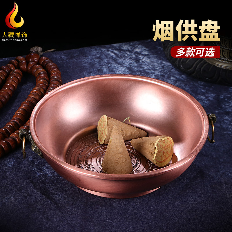 Курильница в тибетском стиле, медная курильница для благовоний, древняя керамическая башня, курильница из сандалового дерева, тарелка для подачи сигарет, рельефная тарелка для еды