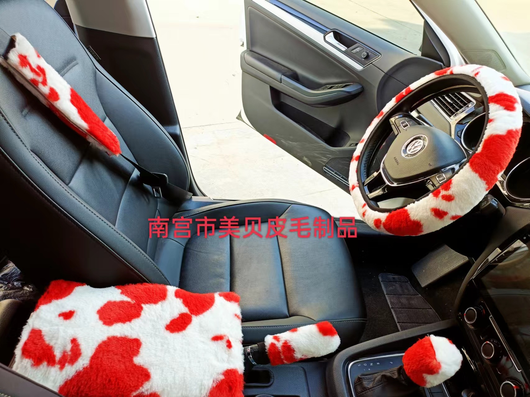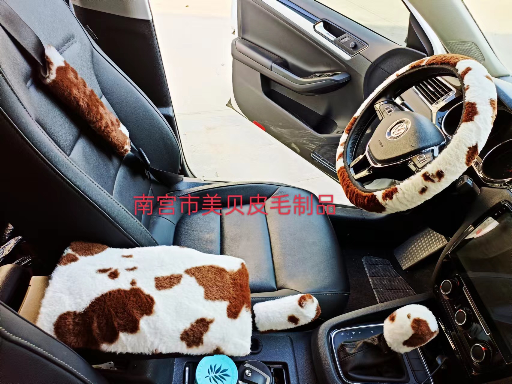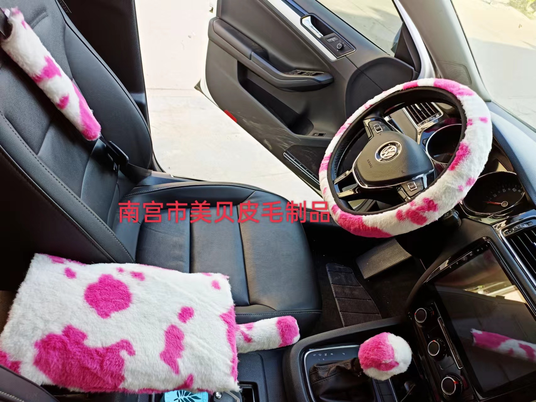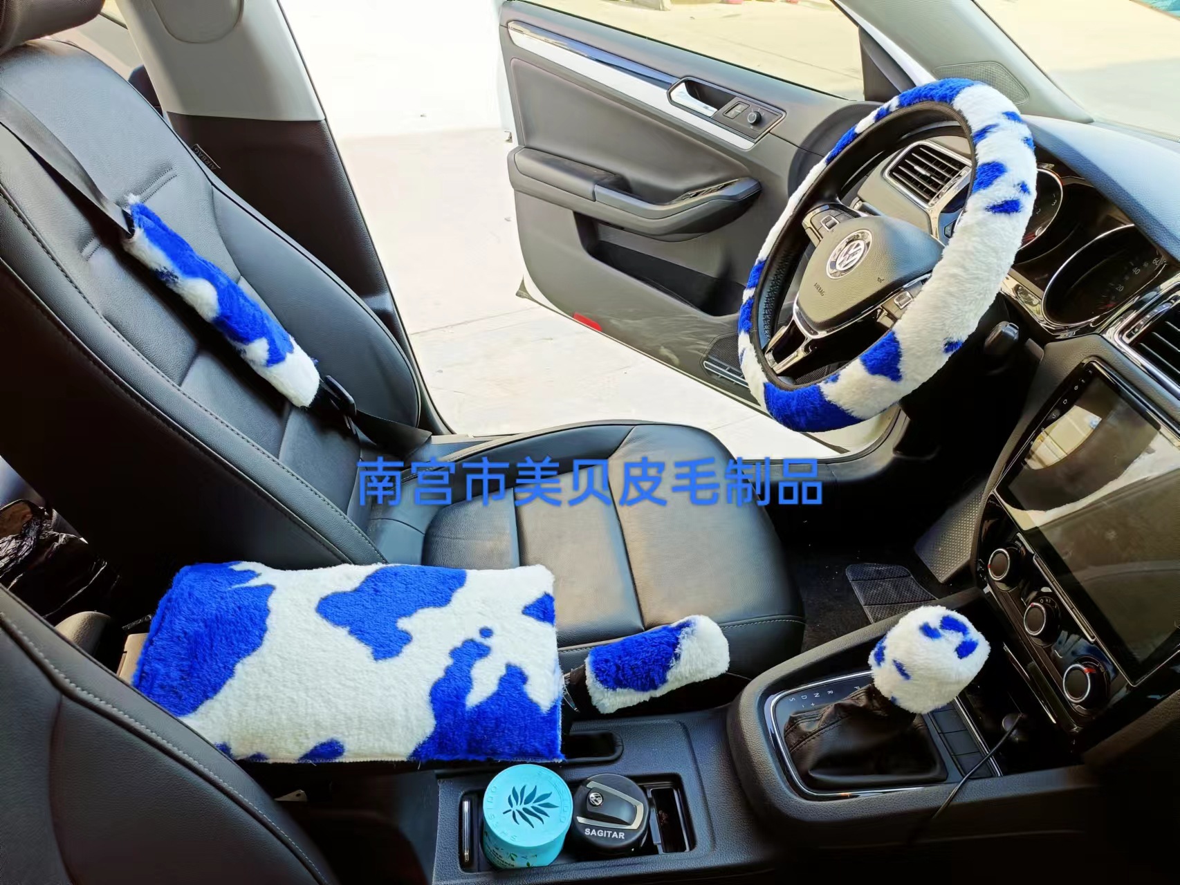 Новый стиль: комплект из трех предметов для автомобиля — рулевое колесо с плюшевой обивкой, ремень безопасности с высокой эластичностью и защитой плеч, с внутренним кольцом в виде коровьего узора.
