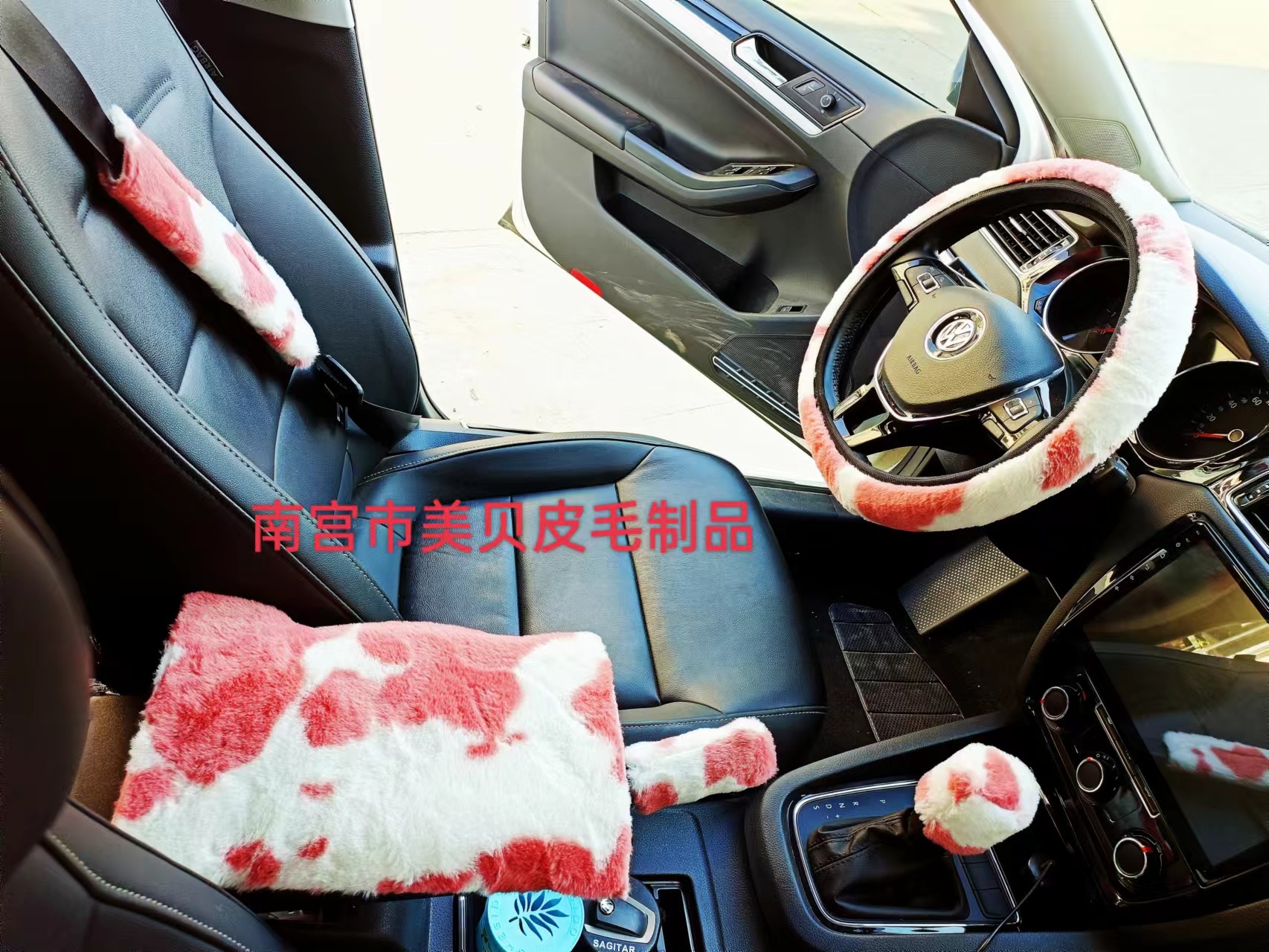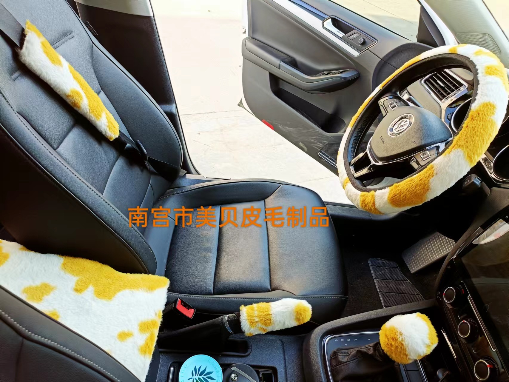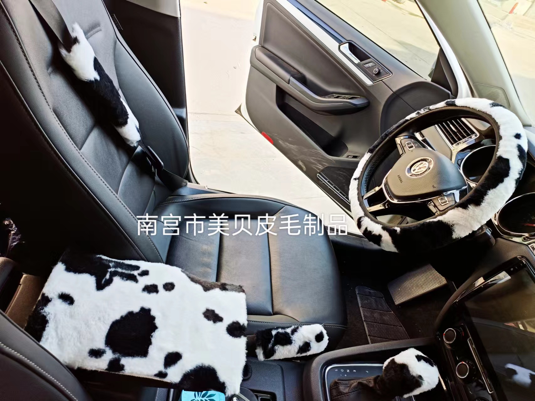 Новый стиль: комплект из трех предметов для автомобиля — рулевое колесо с плюшевой обивкой, ремень безопасности с высокой эластичностью и защитой плеч, с внутренним кольцом в виде коровьего узора.