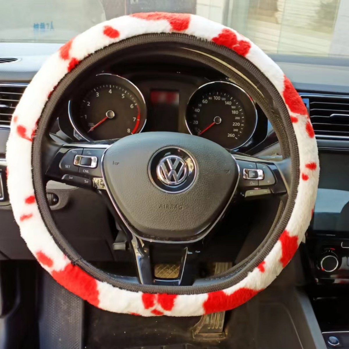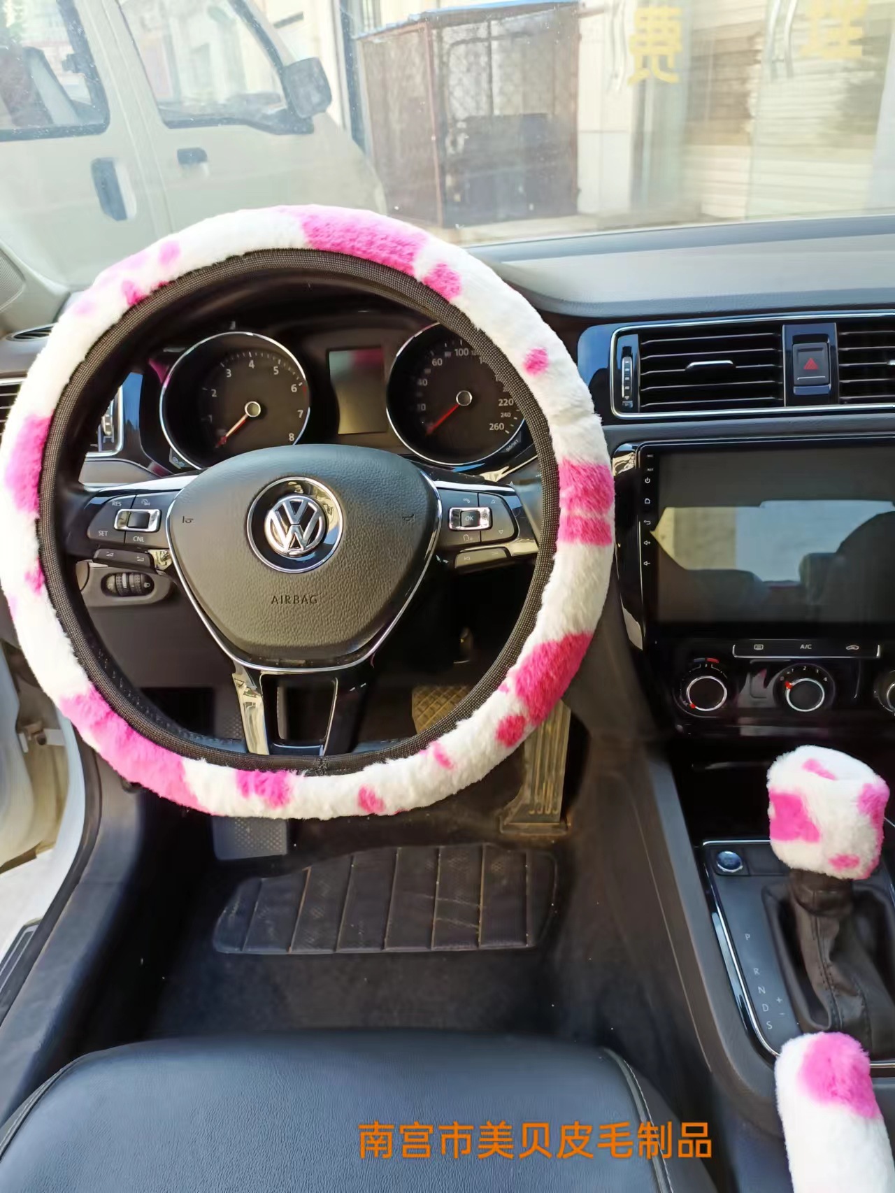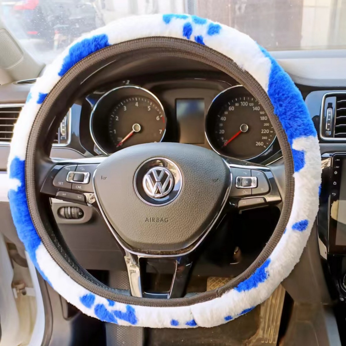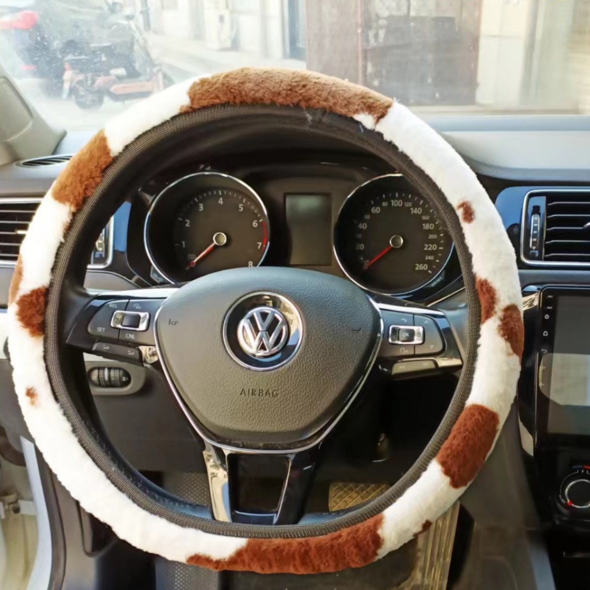 Новый стиль: комплект из трех предметов для автомобиля — рулевое колесо с плюшевой обивкой, ремень безопасности с высокой эластичностью и защитой плеч, с внутренним кольцом в виде коровьего узора.