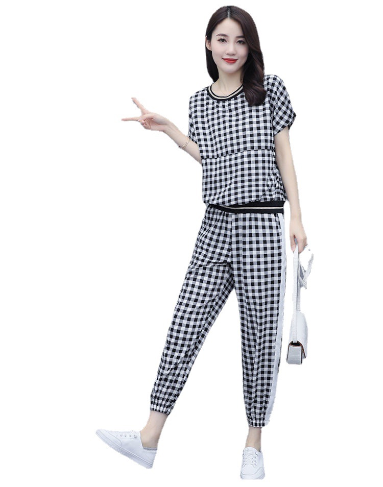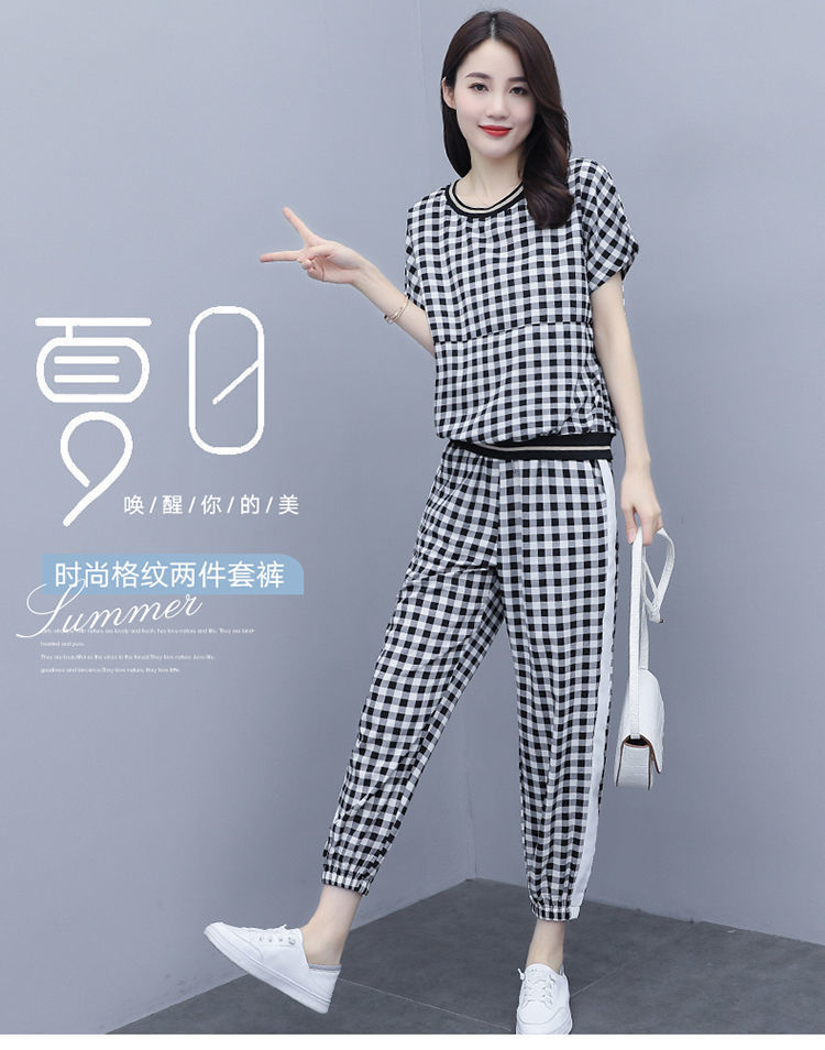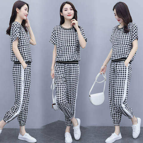 Клетчатый костюм женский Лето 2024 Новый корейский стиль Элегантный Модный большой размер в западном стиле возрастной спортивный комплект из двух предметов