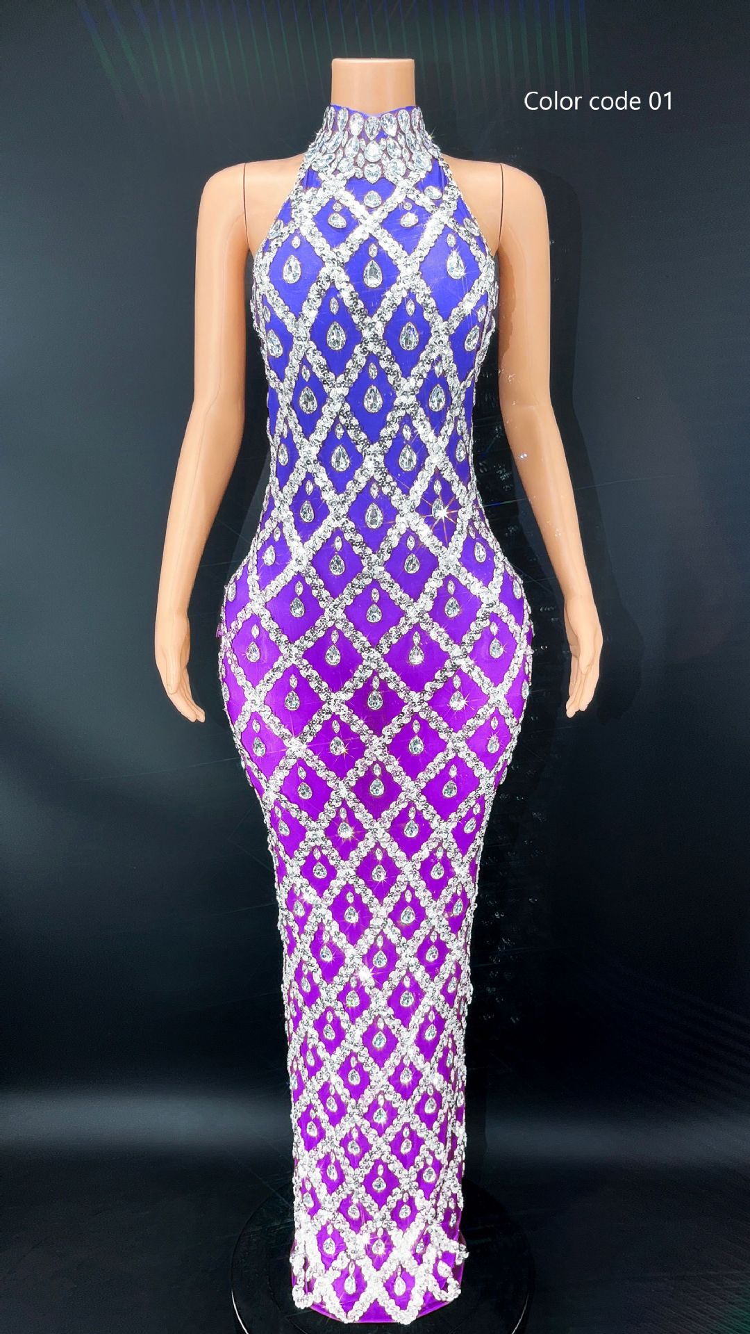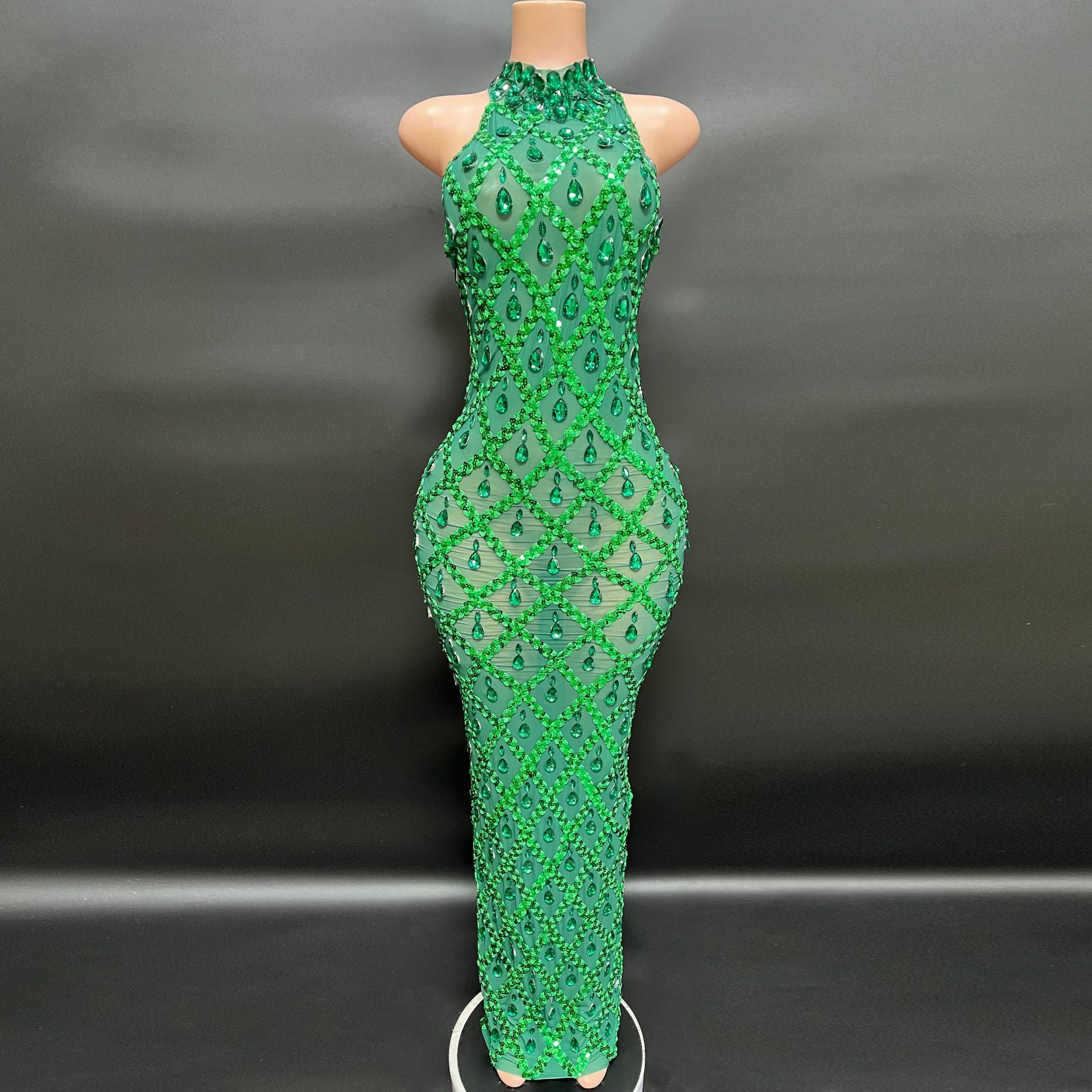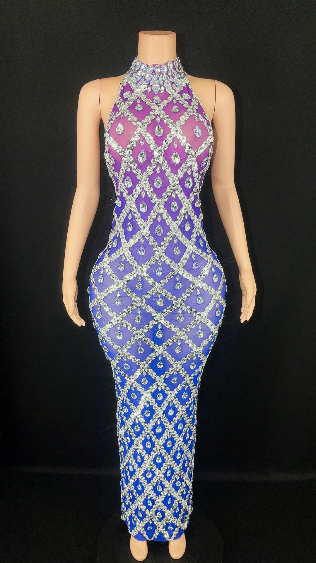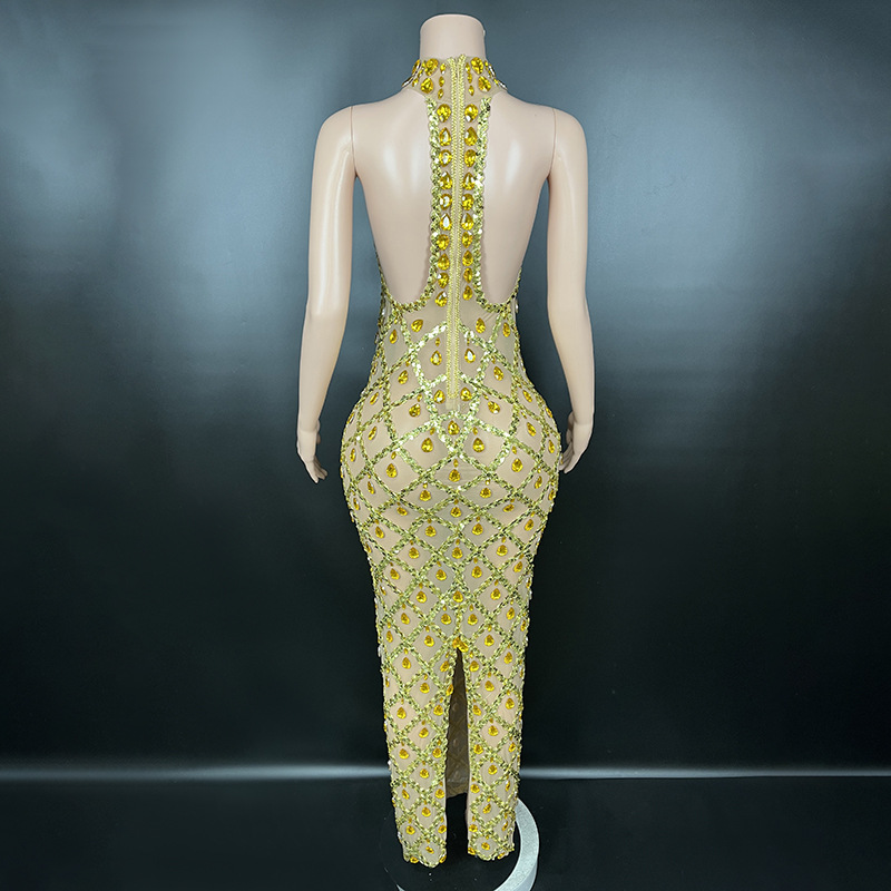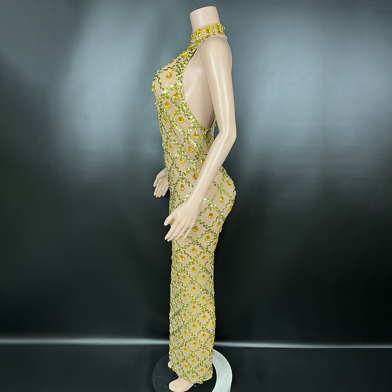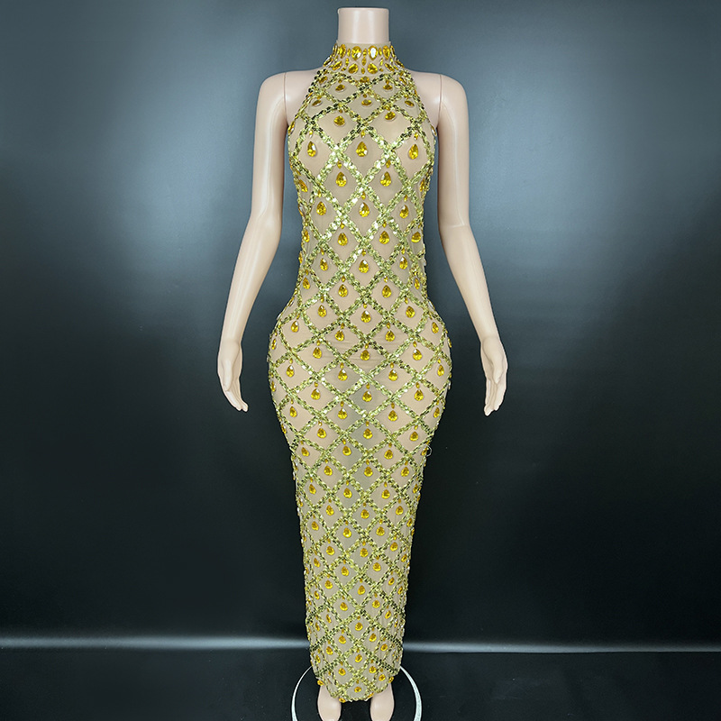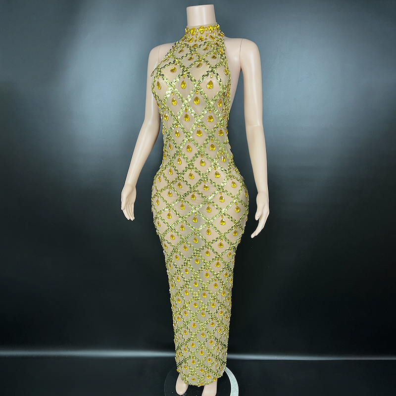 В наличии трансграничное сексуальное блестящее серебряное платье со стразами, женское вечернее платье больших размеров, длинная юбка без рукавов с лямкой на шее