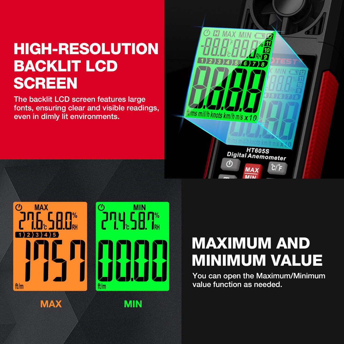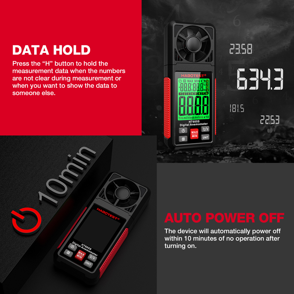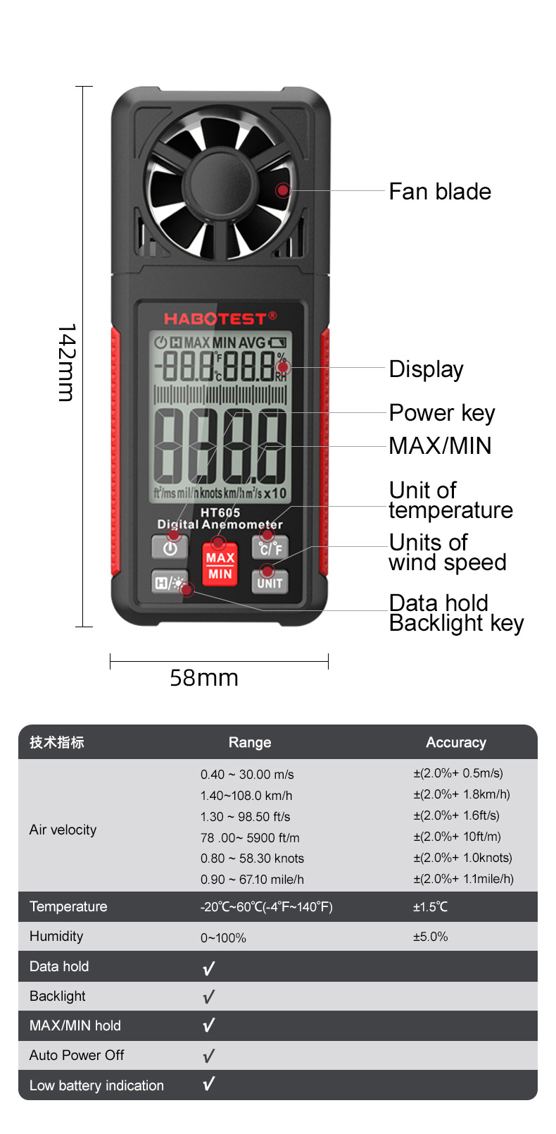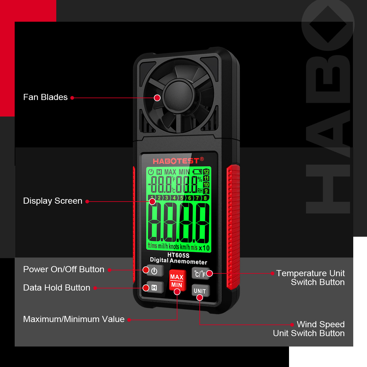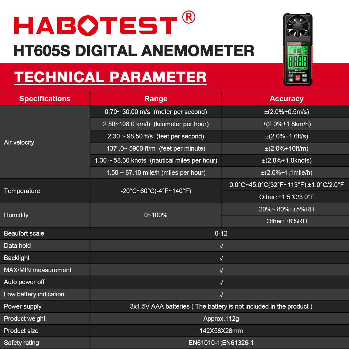 Портативный анемометр HABOTEST HT605 605S для измерения скорости ветра с тепловизором (от производителя)