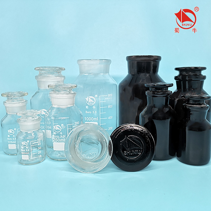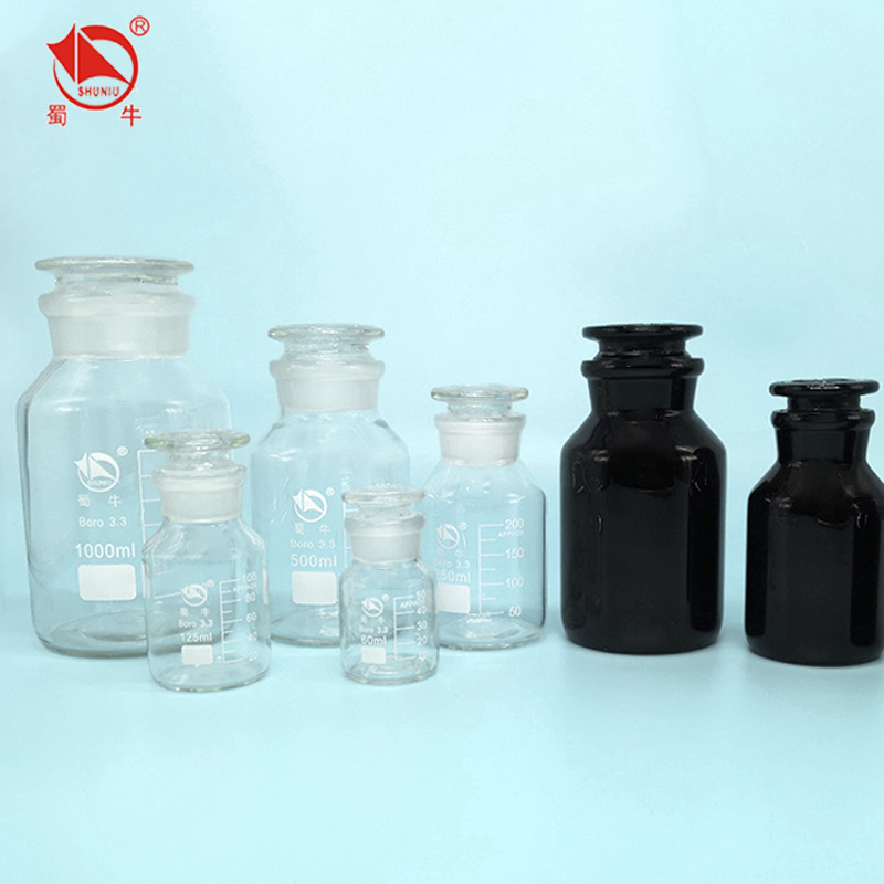 Фабрика оптом Shuniu большой рот бутылка широкий рот бутылка коричневого стекла бутылка реагента Высокий боросиликатный белый широкий рот бутылка реагента