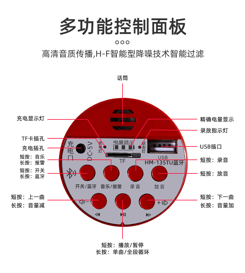 Высокомощный громкоговоритель с двойной дрелью 20 Вт портативный наружный ларец с записью, рупорный громкоговоритель HM-135TU Синий