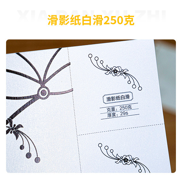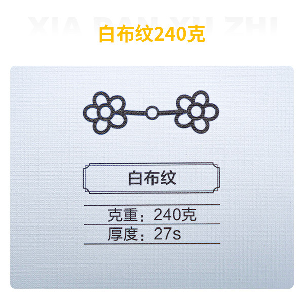 Бумага с меловкой 128 г-300 г; Двойной клейкой бумаги 70 г-120 г; Белый картон 300 г; Матовая бумага 157 г-250 г; Новое чувство красоты белое 180 г-250 г; Бумага скользкая 250 г; Высококлассное изображение супер белого 240 г; Голландская белая карта 250 г; Gonmond обскура серии 240 г; 240 г яичной скорлупы Nissan, Великобритания; 240 г белой ткани; 240 г желтой ткани