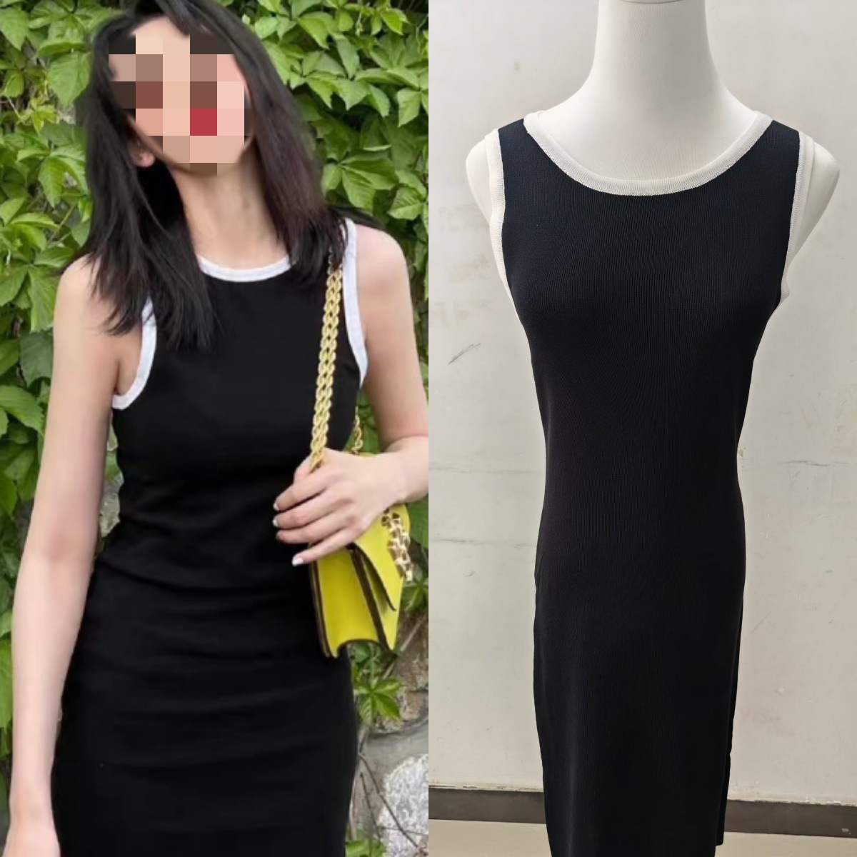 Song Zuer Star 2022 Летнее черное приталенное черное вязаное платье средней длины в бедрах для женщин