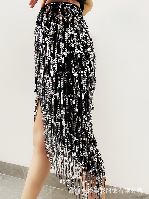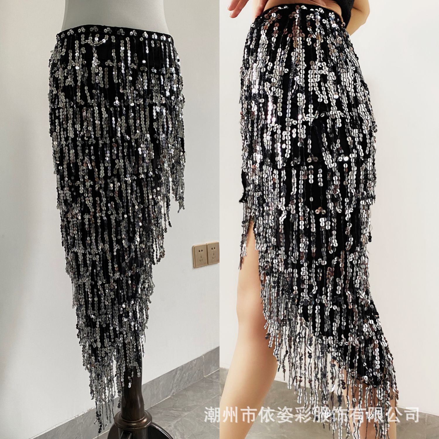 2022 Новый Костюм Для Танца Живота Талия Цепь Бедра Полотенце Обернуть Юбка Блестки Кисточка Саго Тяжелая Промышленность Вдохновленный Костюм Для Производства