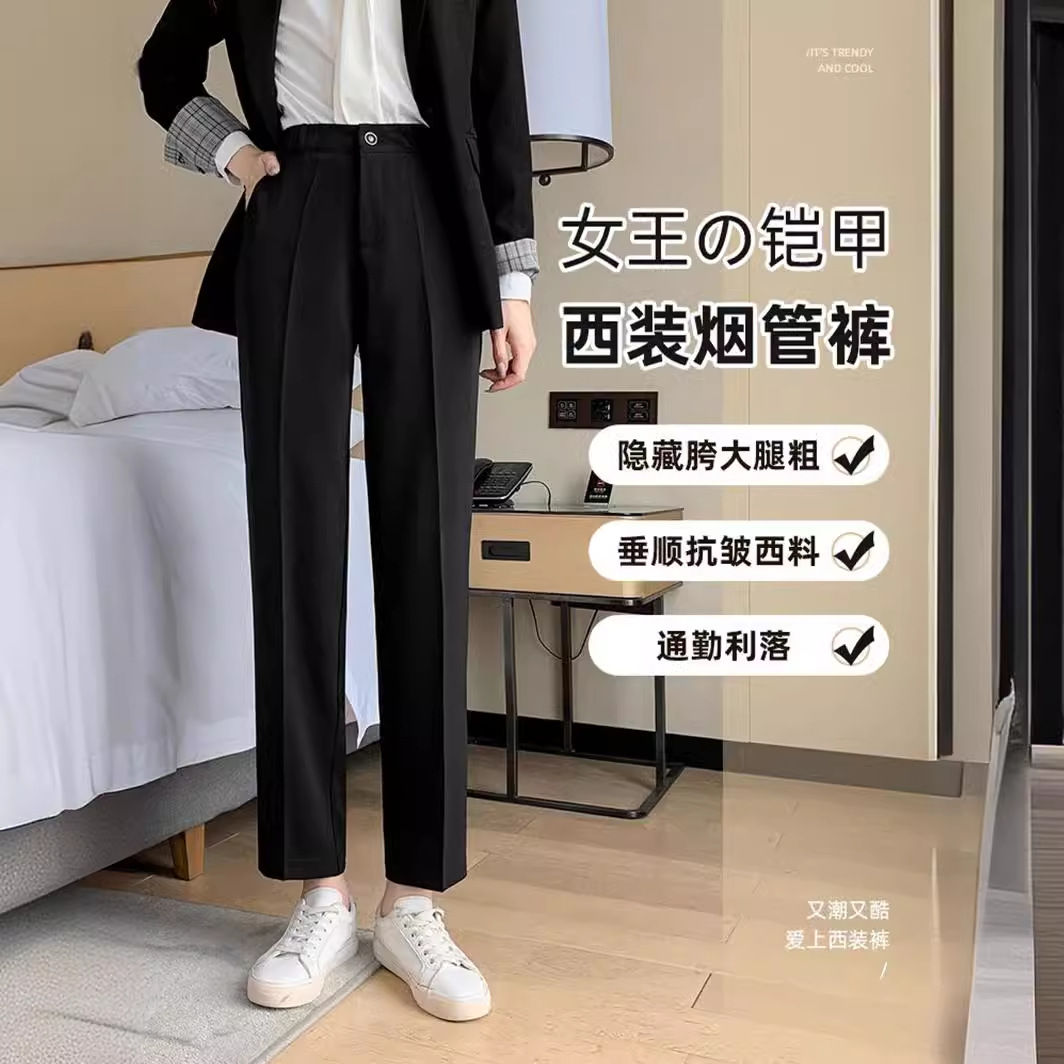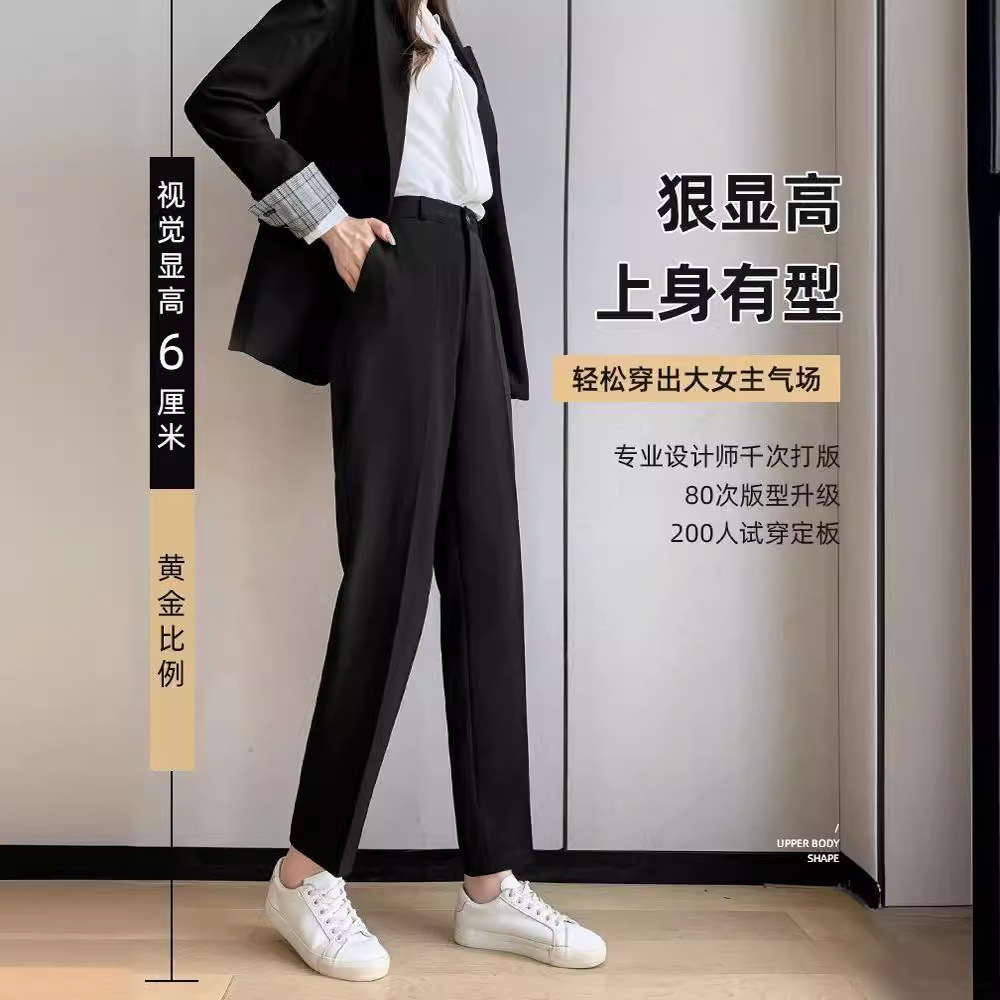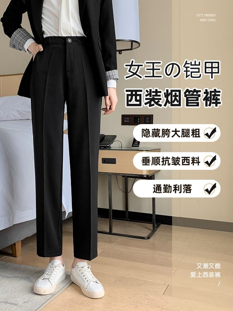Костюмные брюки женские весенне-осенние свободные прямые брюки с драпировкой больших размеров с высокой талией высококачественные летние укороченные длинные брюки с редиской